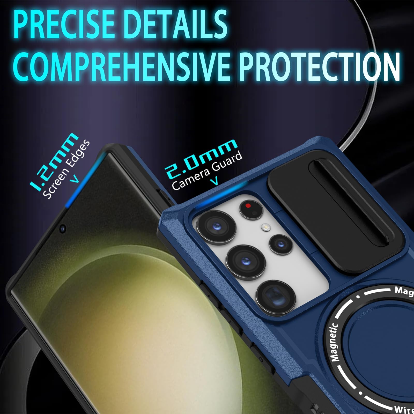 Main Features: 1. 10 FT Military Grade Drop Protection, tough but soft material on case, absorbs shock impact for a better protection. 2. Precise laser cut 9H tempered glass, exquisitely polished, bringing you a good touch experience. 3. Slide Camera Cover, this upgraded case use lens slide design, it easy to slide and not to loose, and enhance protective of your phone camera from scratches, collision, scuffs and impact. 4. Magnetic Ring Stand Compatible with MagSafe. Built-in kickstand gives you the convenience to watch videos and movies hands-free with desired comfort and stability. 5. Processed TPU frame provide with delicate touch feeling and non-slip. The non-slip bumper provides excellent grip and prevents your phone from slipping out of your hand. 6. 100% access to USB-C ports, silent switch and volume/power buttons. Notes: The size of the charging port opening is not big enough (only 12.8mm*6.45mm) for other replacement charger. Recommend to use original Samsung Galaxy S23 Ultra charging cable. What's in the Package: 1* KTUOHU Case for Samsung Galaxy S23 Ultra 6.8 inch 1* 9H tempered glass screen protector 1* Cleaning Kit Warranty Policy: We are here to serve you, KTUOHU Support Team will respond to your request within 24 hours! Also our 12 month replacement warranty and lifetime support guarantee can ensure you a confident purchase.