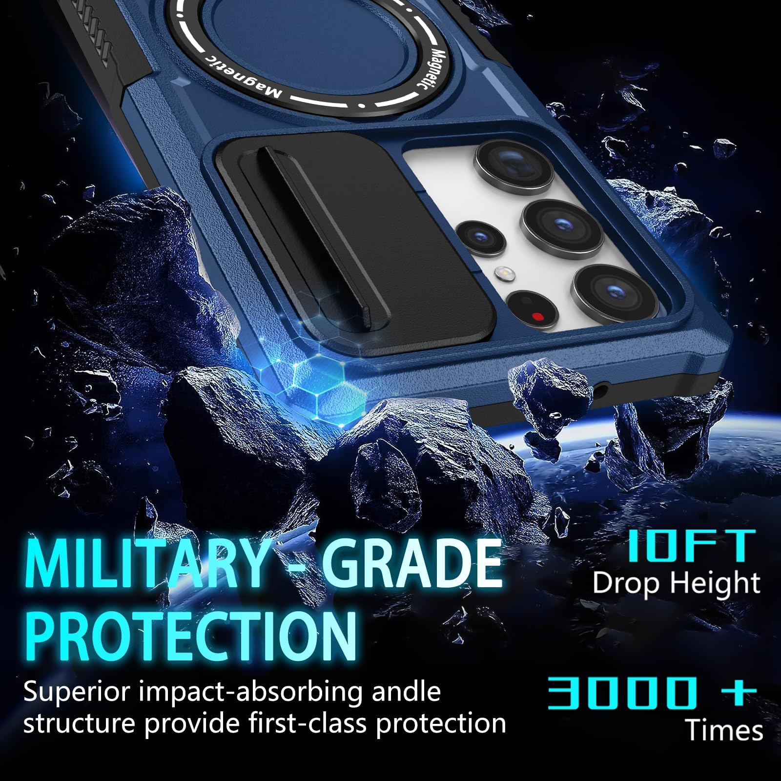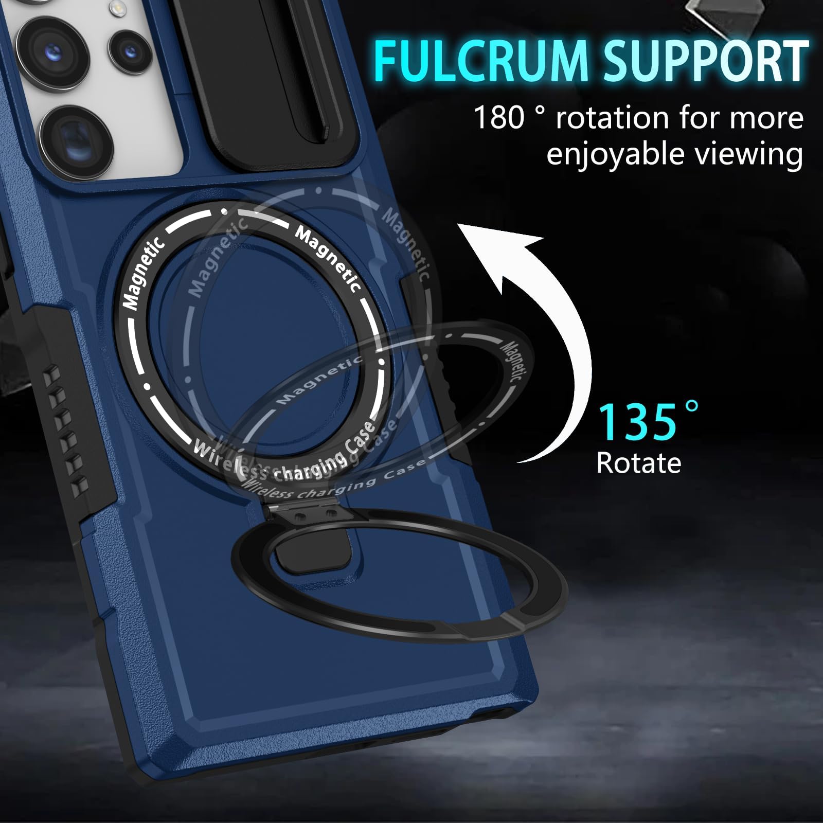 【Magnetic Ring Stand】This Samsung S23 Ultra phone case with magnetic ring kickstand provide two stand modes for vertical and horizontal viewing, can help you keep your hands free when watching web pages and videos. It can also be attached to a magnetic car mount (Not includes the magnetic car mount holder).