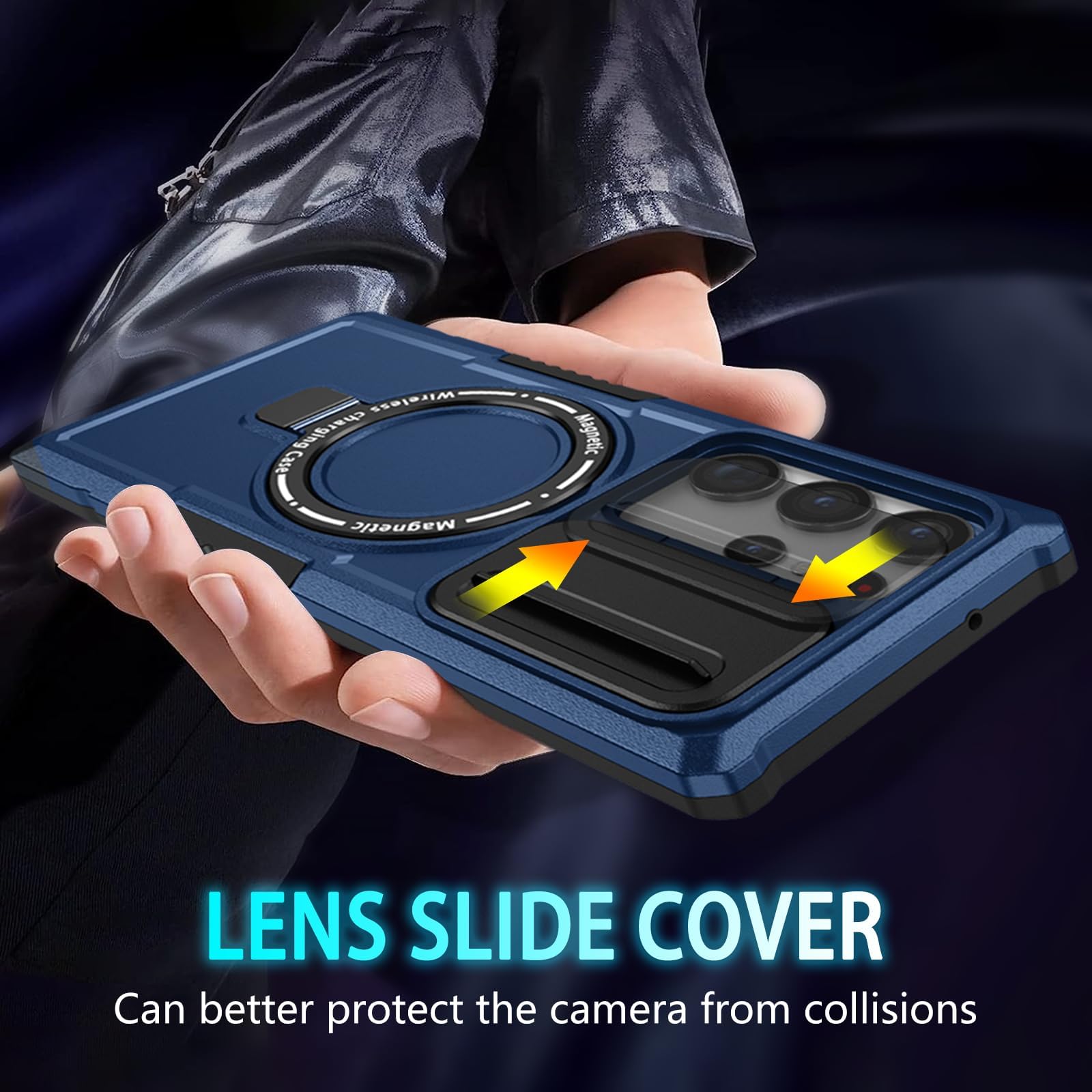 【Compatible with MagSafe】The Samsung Galaxy S23 Ultra case built-in MagSafe function and automatically adsorbs into place with magnetic charging, making charging your phone more convenient and faster. It is compatible with all MagSafe accessories like leather wallets, wireless chargers, battery packs, and car mounts.