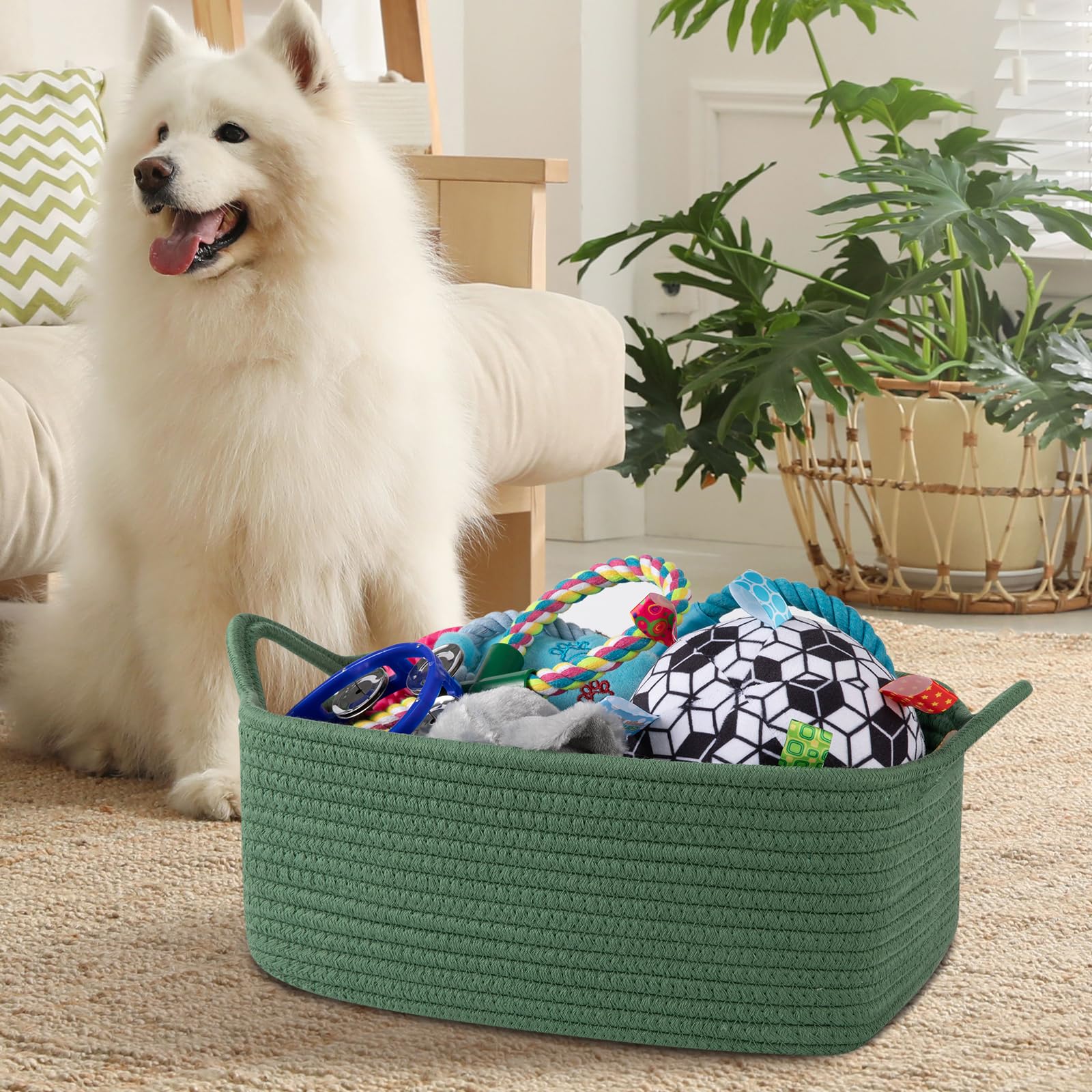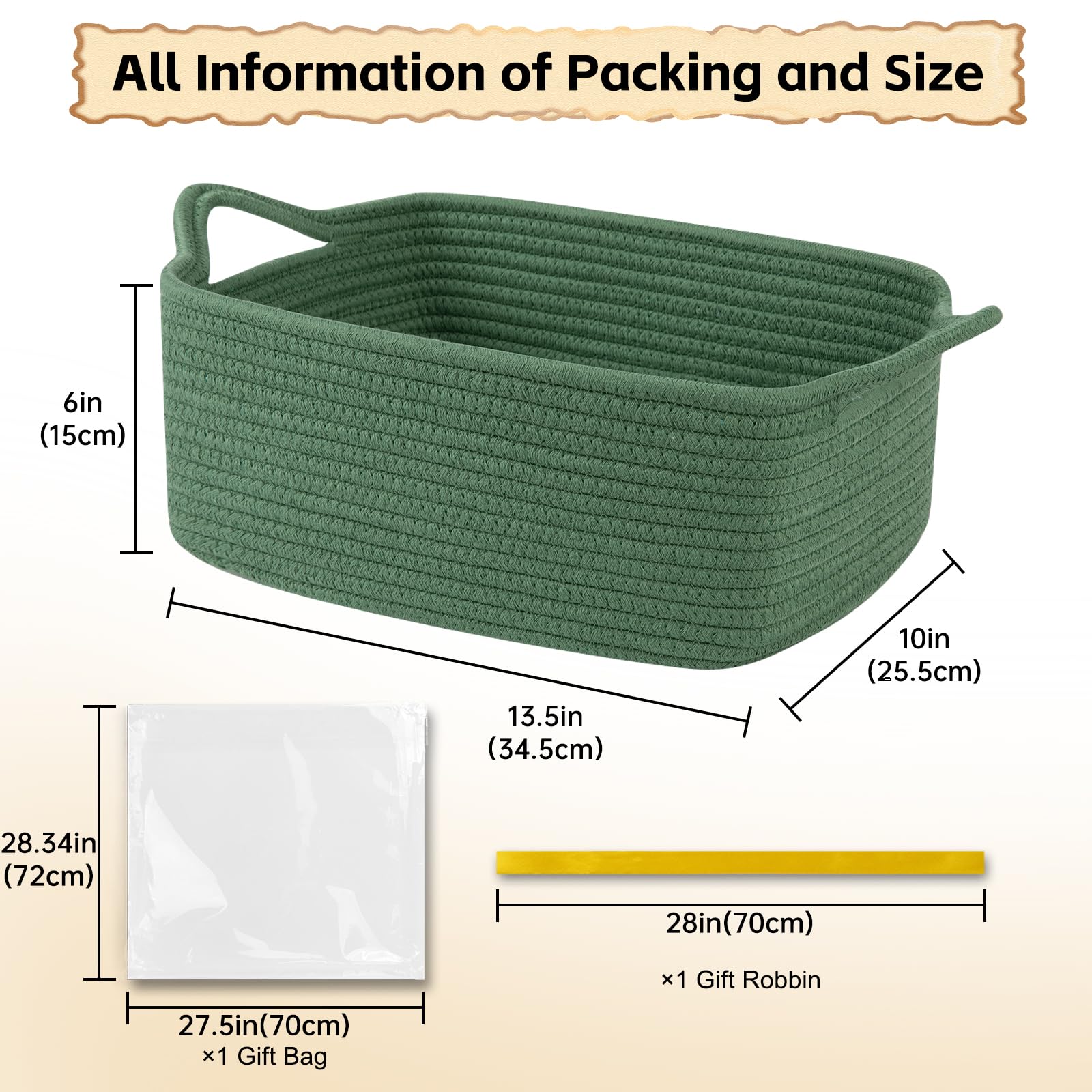 Safe Material: The basket is 13.5*10*6in and made of 100% pure cotton material, no chemical material, no odor, soft and skin friendly. It is no sharp edges that may scratch the floor, especially suitable for children and pets.We are passionate about providing you and your family with a healthy and clean home atmosphere