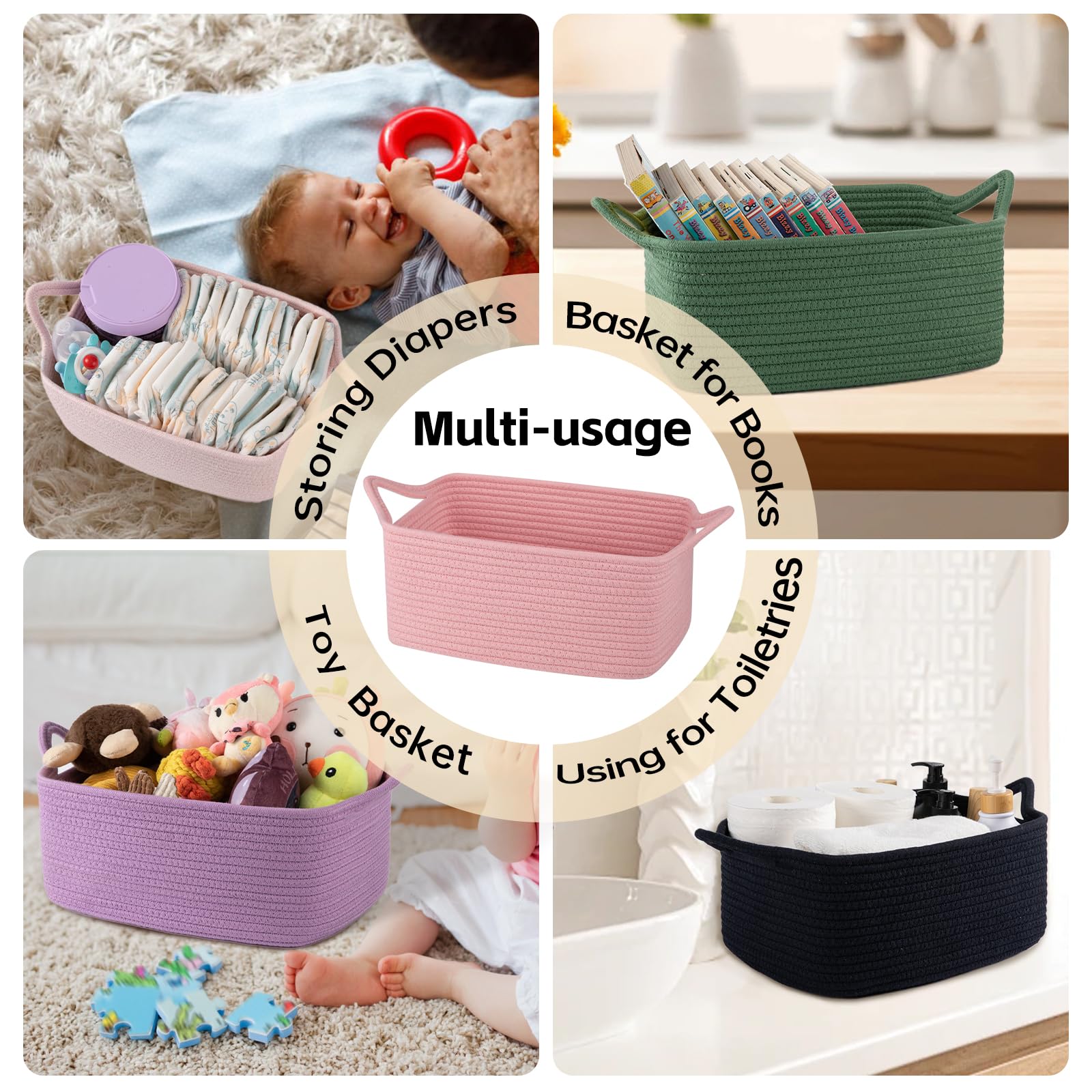 Multi functional storage: The woven basket has multiple practical functions and can store daily small items such as books, diapers, keys, fruits, snacks, etc. It can be used as a children's toy basket, dog toy basket, toiletries basket, shelf basket, or desktop organizing basket. It has a wide range of applicability and can be easily integrated into various home spaces, such as living rooms, bedrooms, children's rooms, washbasins, etc