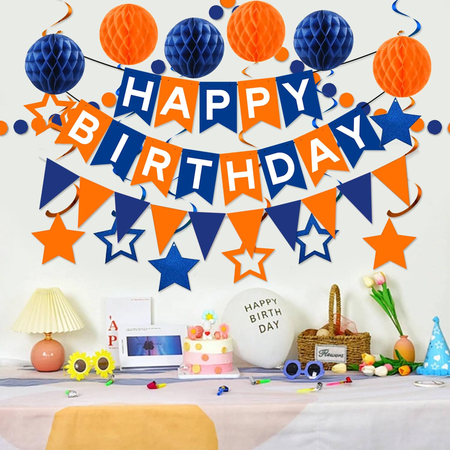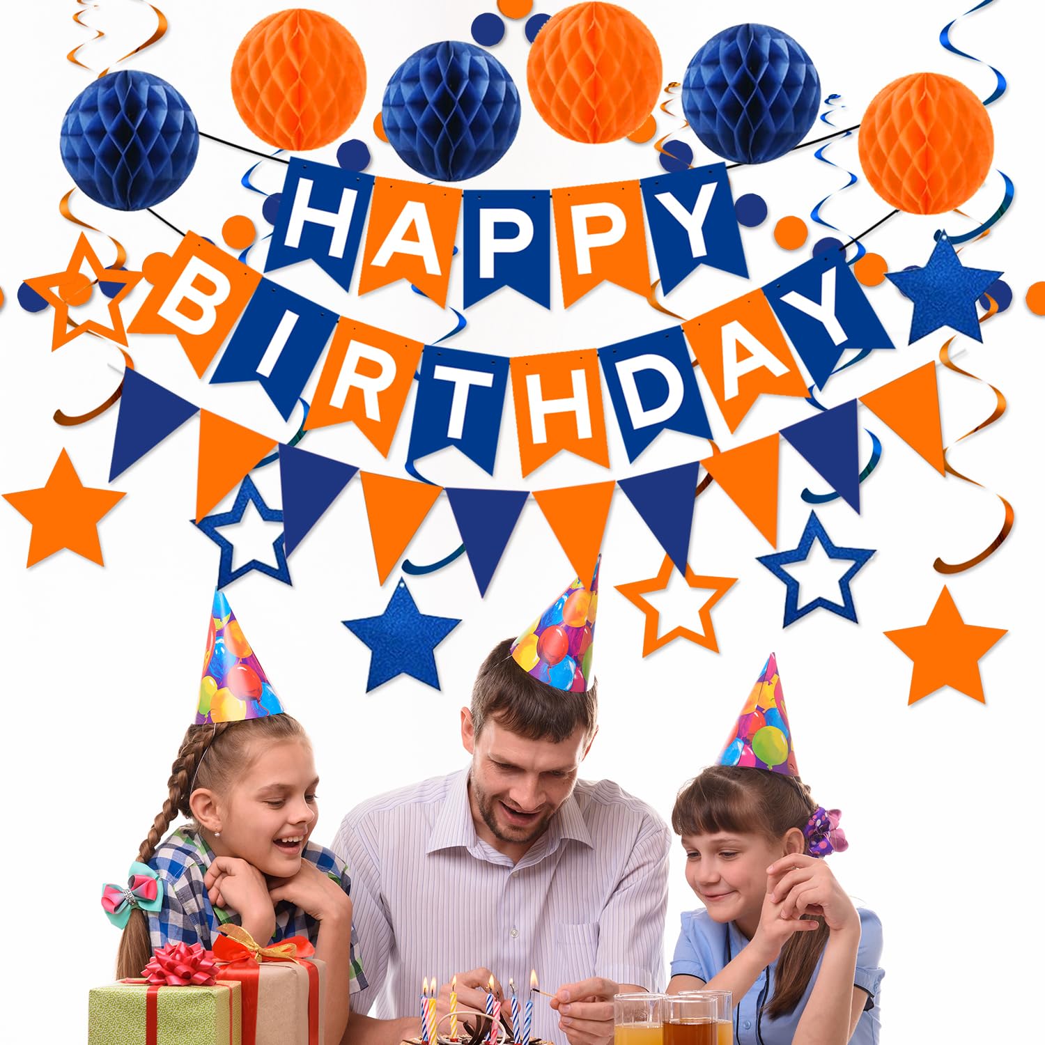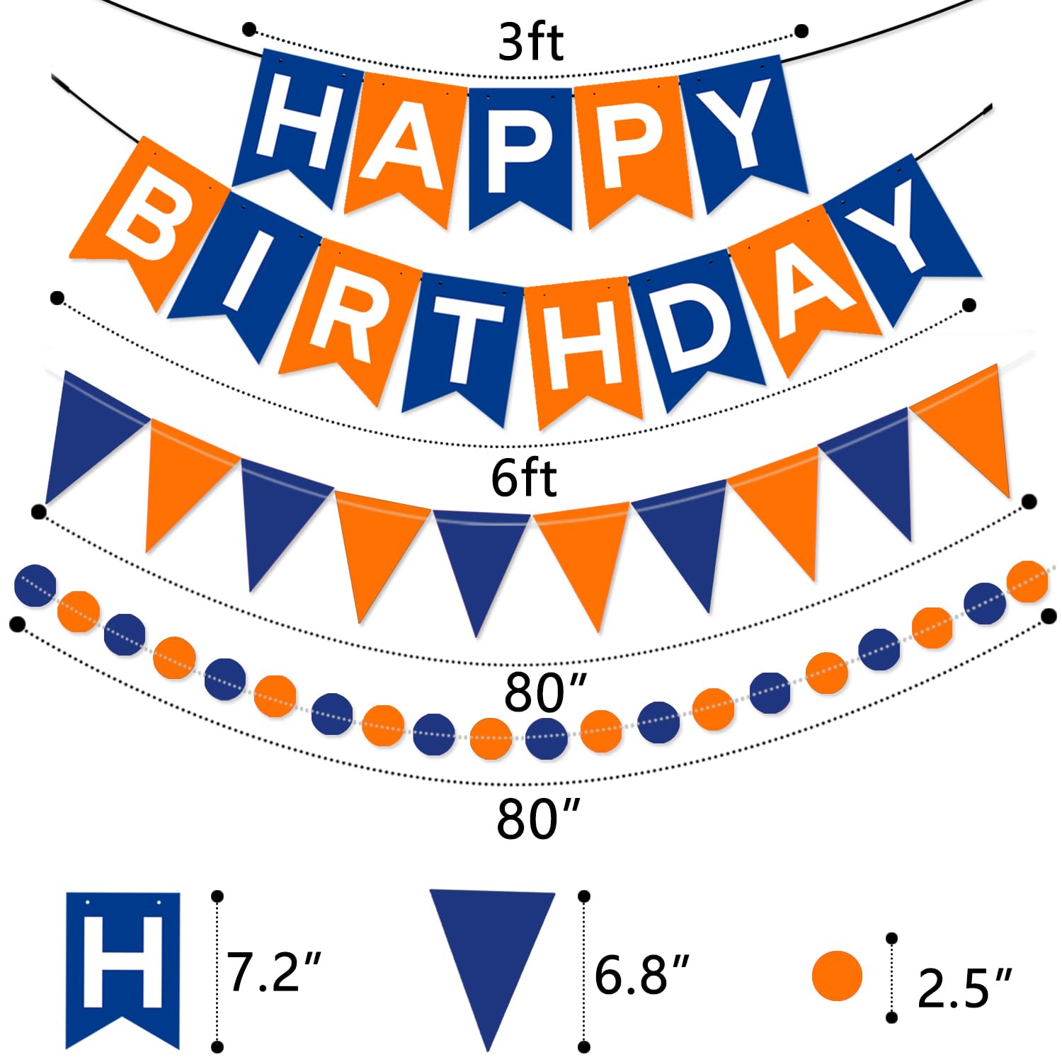 What you will get: 1 set "Happy Birthday" banner, 1 string circle dots, 1 string flag bunting banner, 6pcs honeycomb balls, 8pcs swirls streamers with stars.Only one package contains a wealth of decorative accessories, without the need for complicated assembly. With just a simple setup, you can create an ideal birthday party.