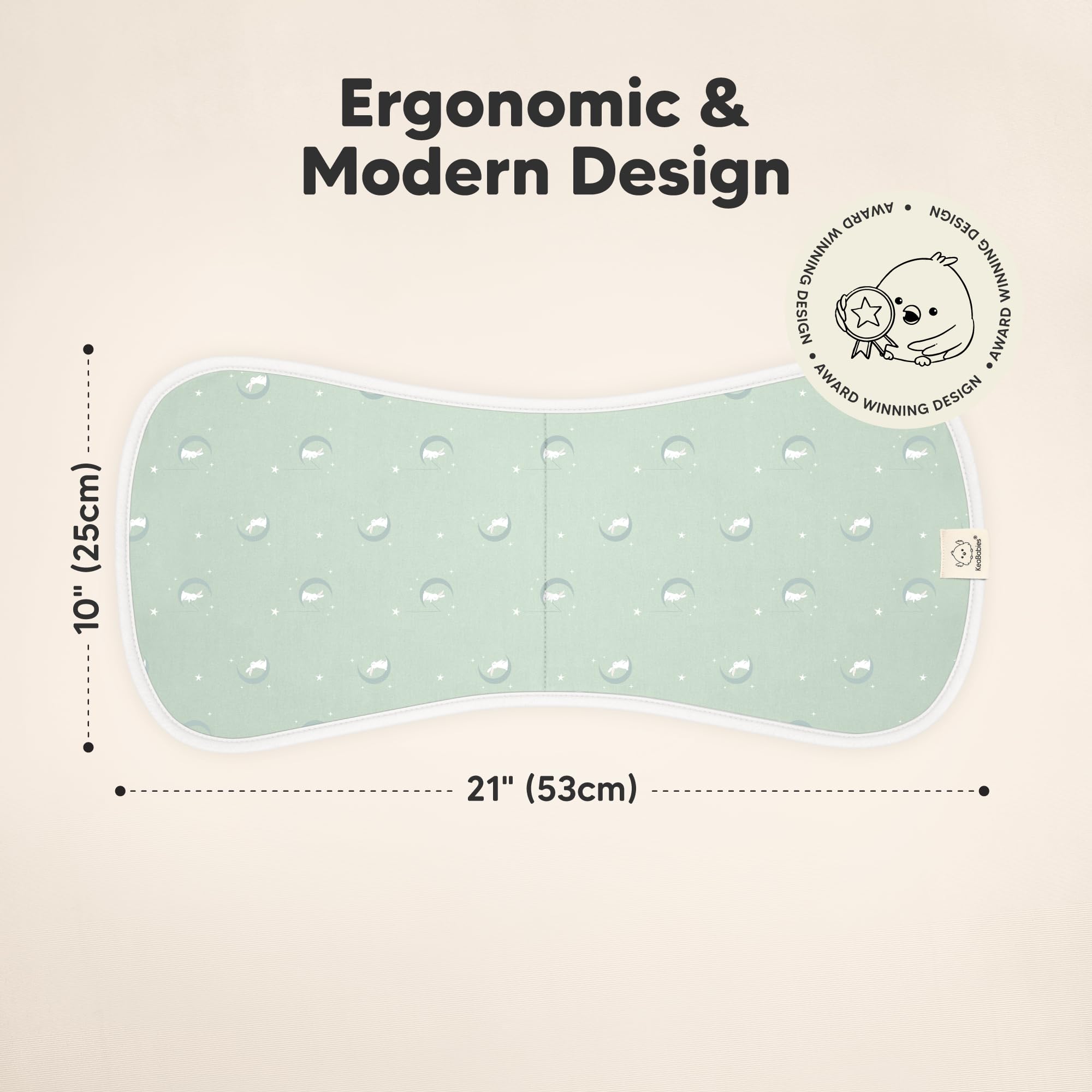 The Figure-8 Full Shoulder Coverage - Our organic baby burp clothes for baby girls and baby boys, sized at 21" x 10", are wide enough to cover your shoulders. The unique figure-8 design prevents the burp rags from slipping.