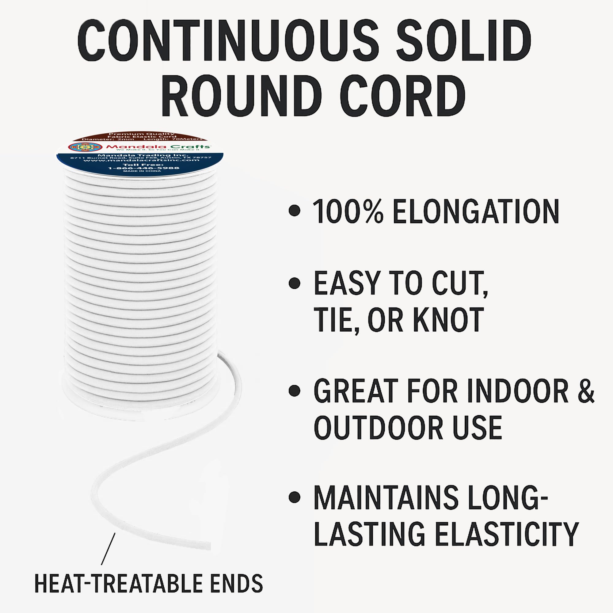 White Round Elastic Cording: The soft & flexible thick elastic cord made from nylon & rubber is colorfast, washable, & dryable. As strong as rubber string, the elastic rope cord serves as durable stretchy sewing string and elastic craft string.