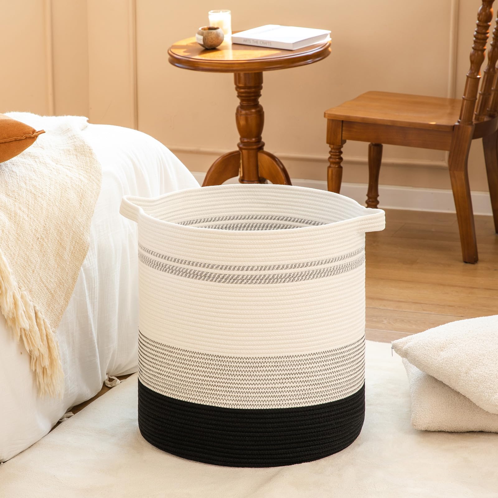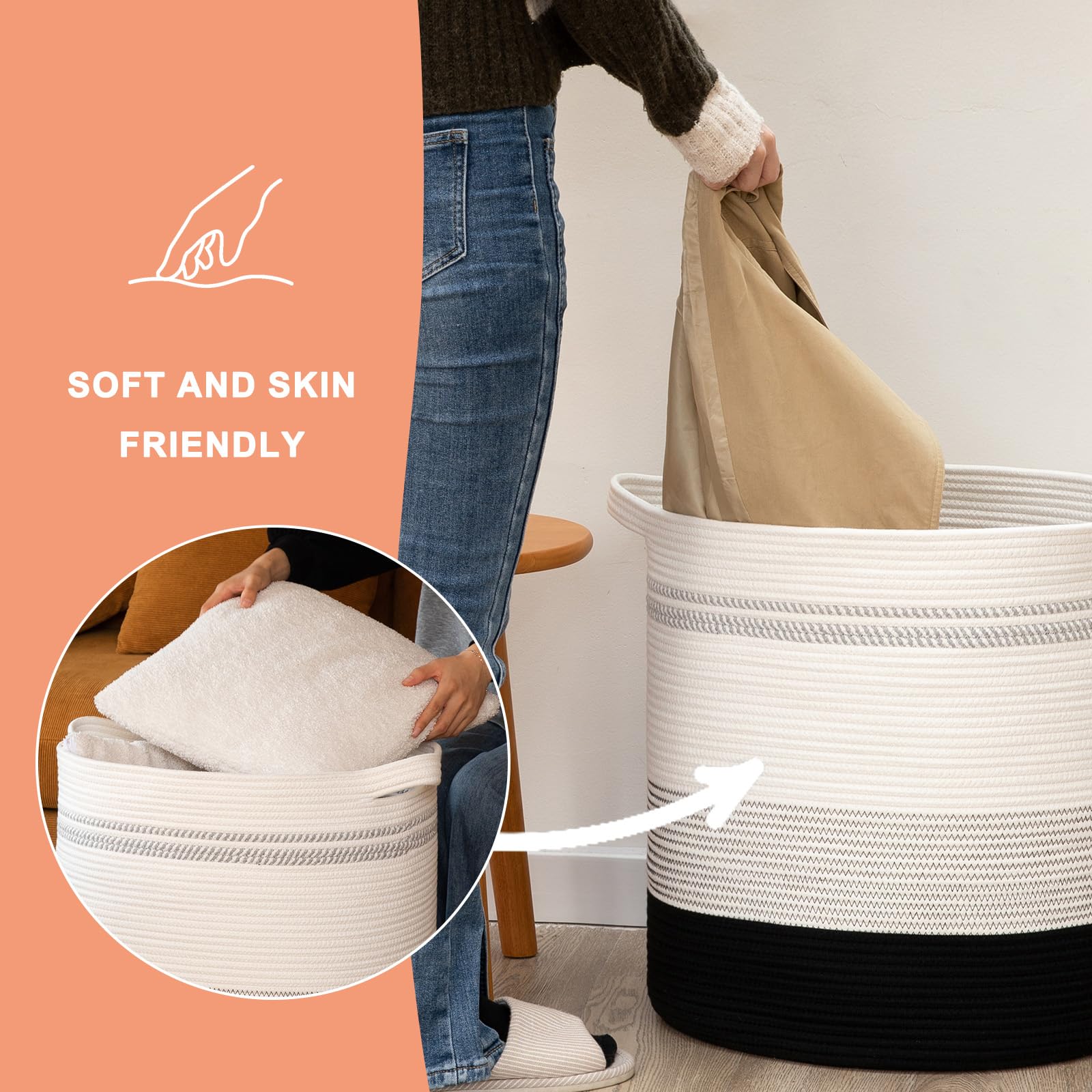 Oversized Size Decorative Laundry Baskets: The overall size of the laundry Hamper is 20 x 18 inches(all dimensions are measured manually with deviation)This large basket can easily accommodate the family's one-week change of clothes and keep room clean&tidy.This elegant storage basket bring great convenience in life to store bulky items like blankets,comforters,duvets,throw pillows,cushions,stuffed animals,winter clothing etc