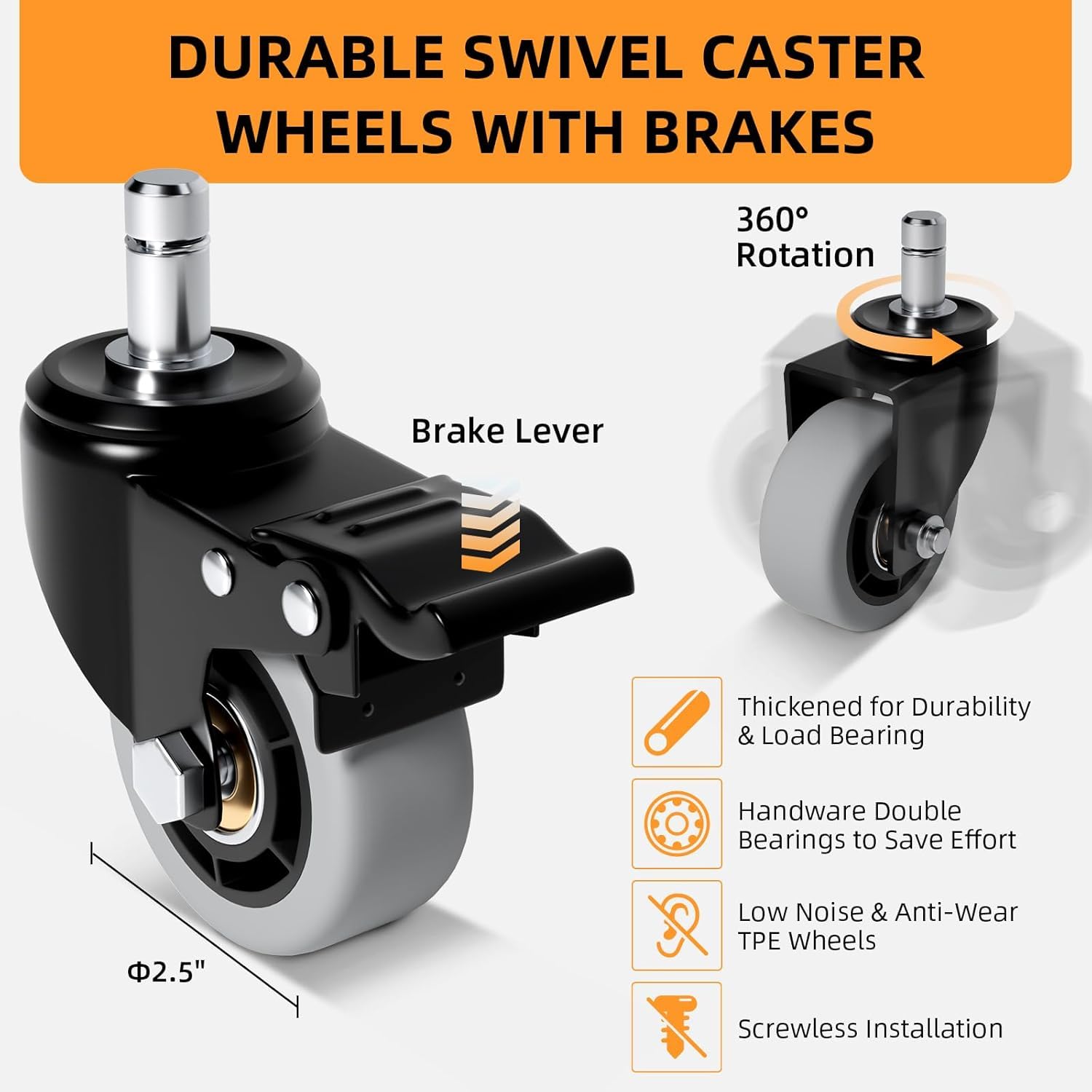 ENLARGE WHEELS WITH BRAKES: Upgraded and enlarged 2.5 inch 360° wheels make the dolly better than 2 inch wheels in terms of weight bearing and passing during use. Noiseless and durable, this lightweight dolly with brakes ensure flexibility and stability