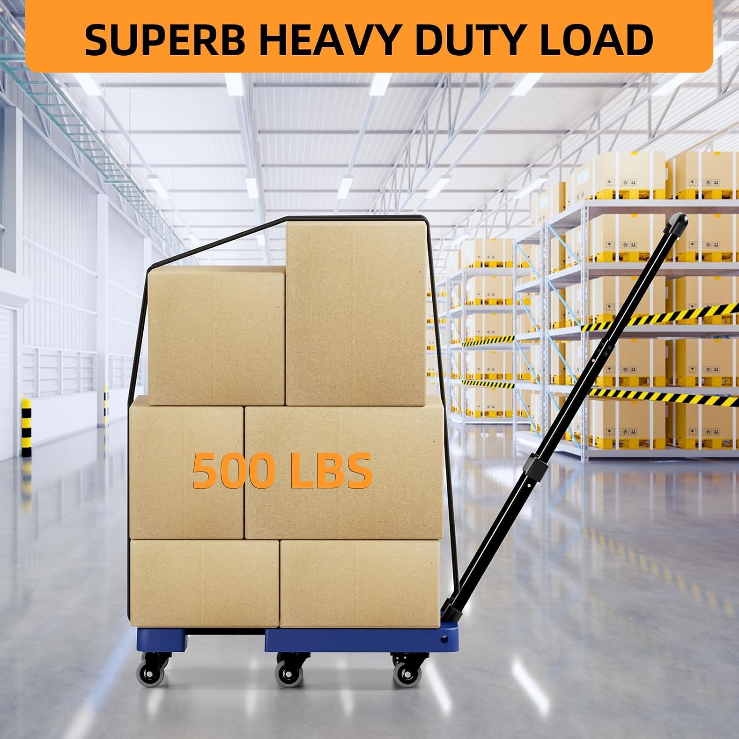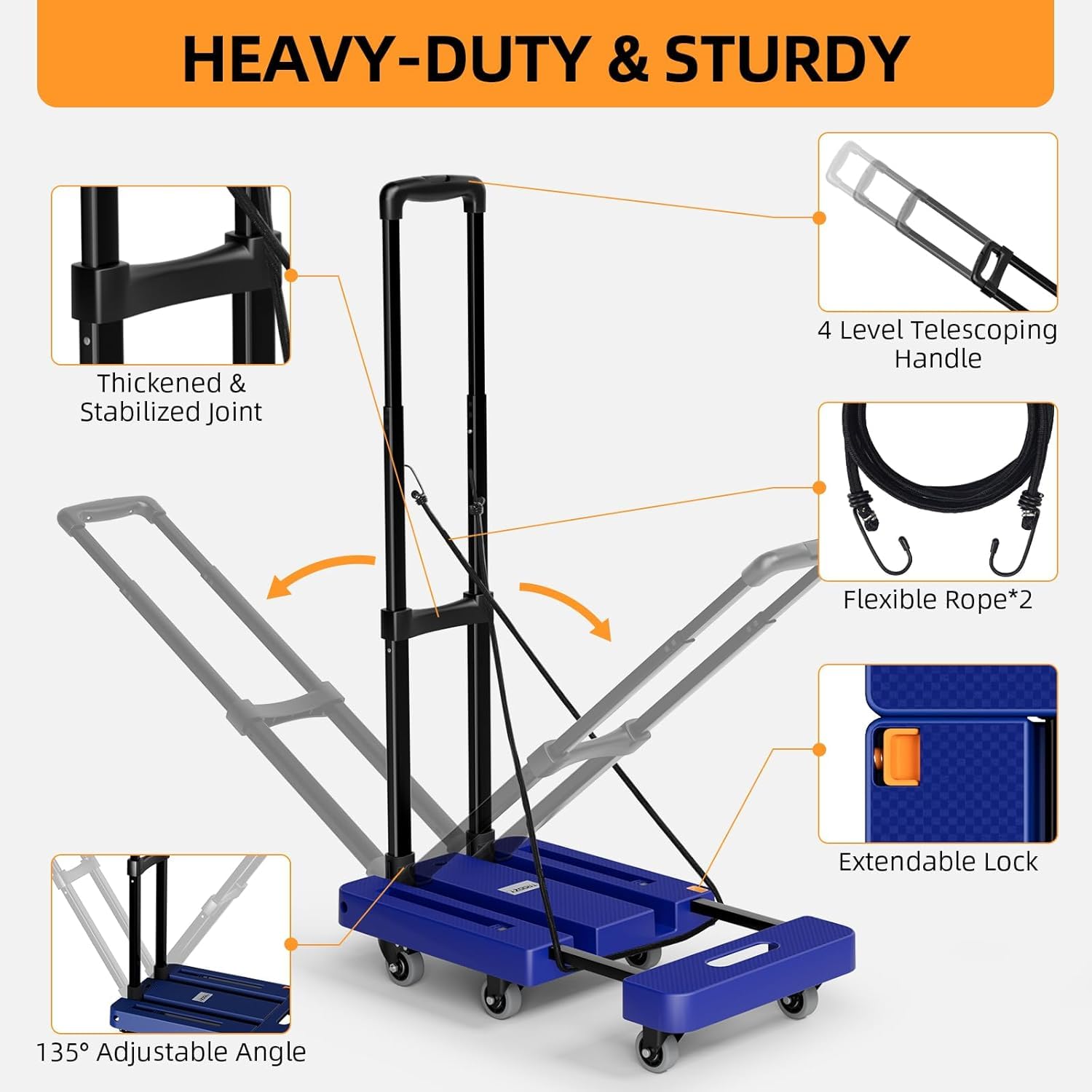 EXTENDABLE BASE PLATE: Expandable, thickened flat bottom plate extends from 17inch to 22inch to easily accommodate larger items, so say goodbye to worrying about oversized boxes. Non-slip texture ensures that goods will not slip out during transportation