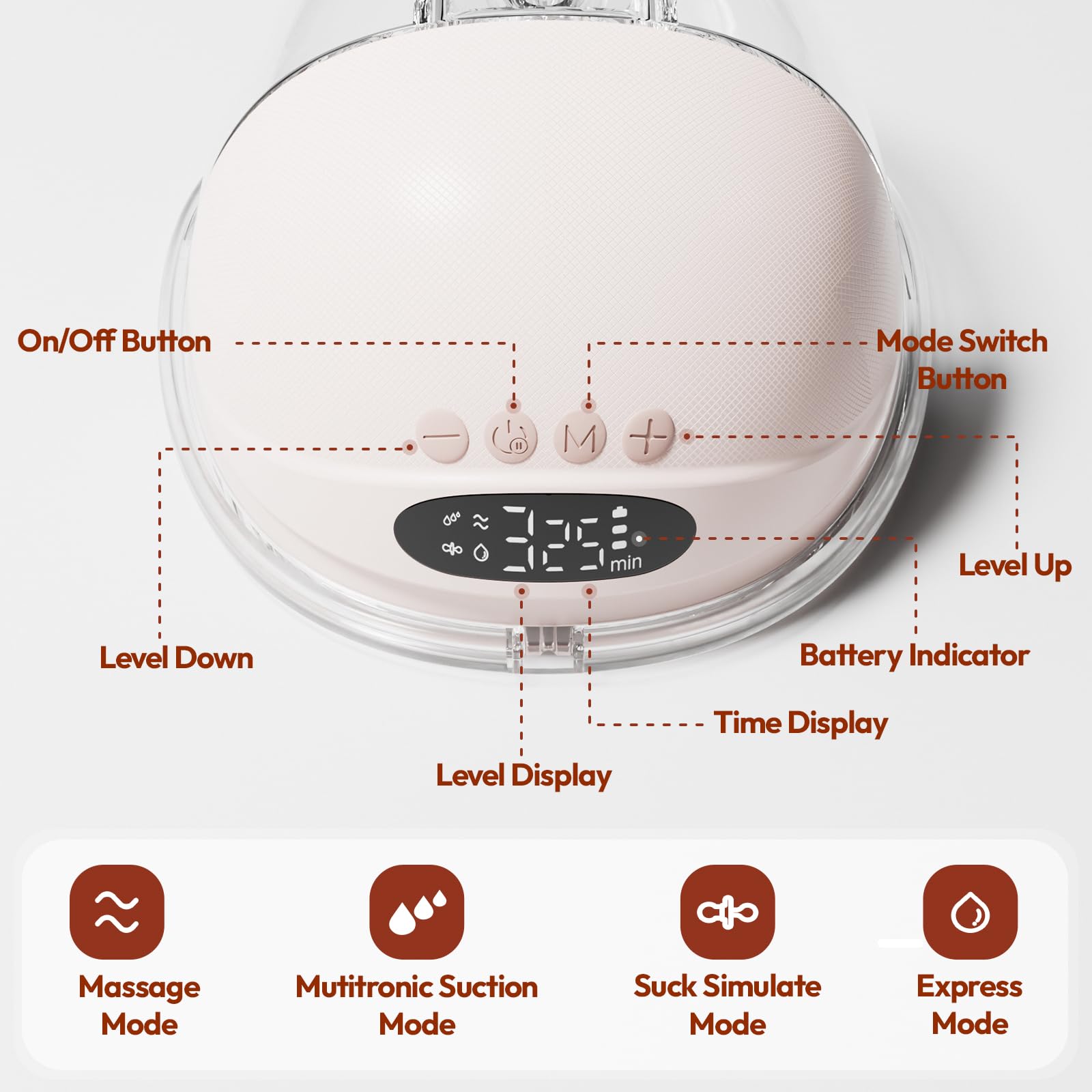 Efficient & Customizable Pumping: The NCVI Wearable Breast Pump 8131 has an upgraded two-phase expression tech to mimic a baby’s natural feeding rhythm for personalized comfort. Start with Massage Mode or Multitronic Suction Mode to stimulate milk flow with gentle, quick pulses. Then, switch to Suck Simulate Mode or Express Mode for slow, deep suction to fully empty the breast. With 4 modes and 9 levels, you will always find your optimal mode