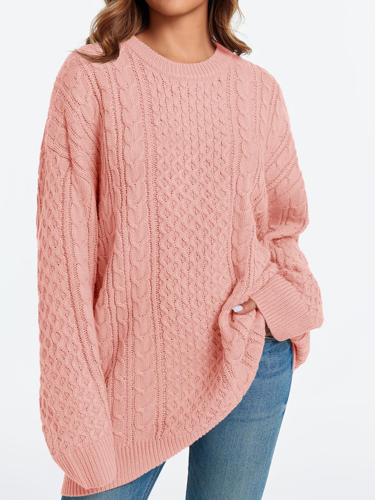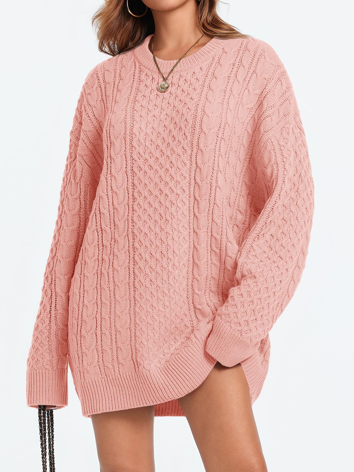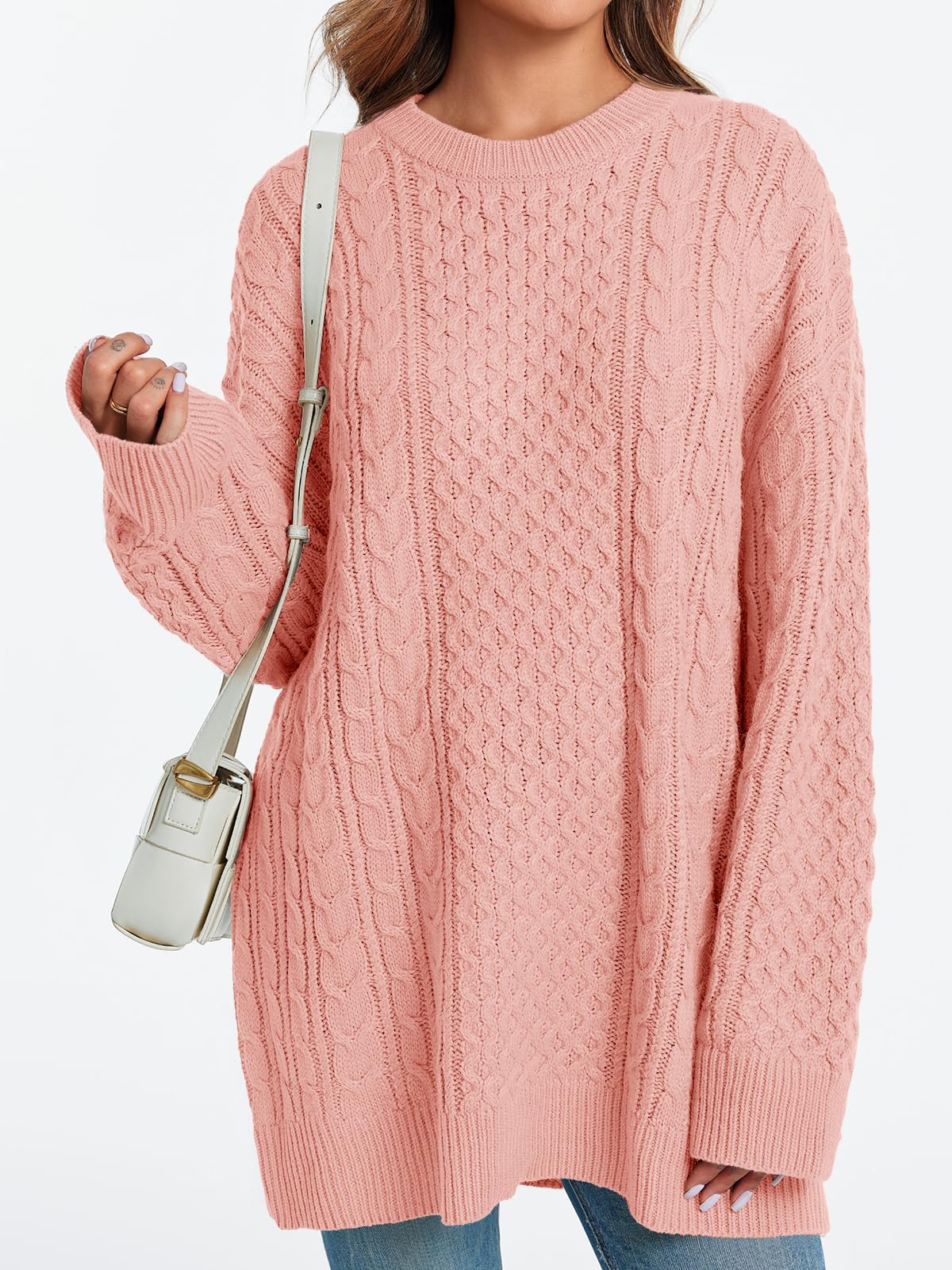 Feature: This tunic sweaters for women features crewneck, long sleeve, below hip length, cable knit, loose fit, chunky knit, slouchy baggy style, drop shoulder, ribbed hem, chunky cable knit sweater women, long sleeve sweater dress.