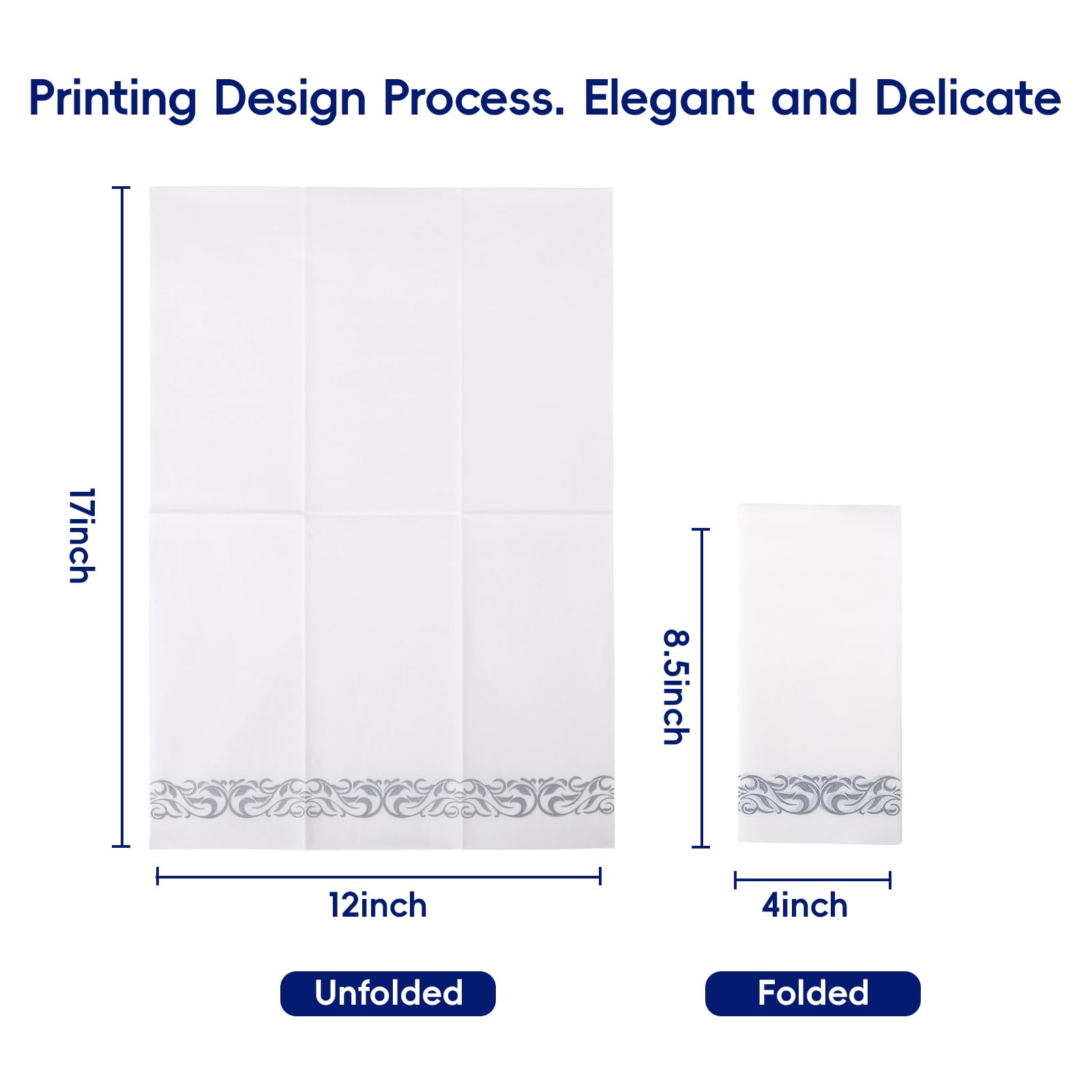 Size: When the whole disposable guest towels piece is 12" X 17" when unfolded, and 8.5" X 4" when folded when folded - Has a 1/6-fold design for compact storage and extra absorbency when folded.