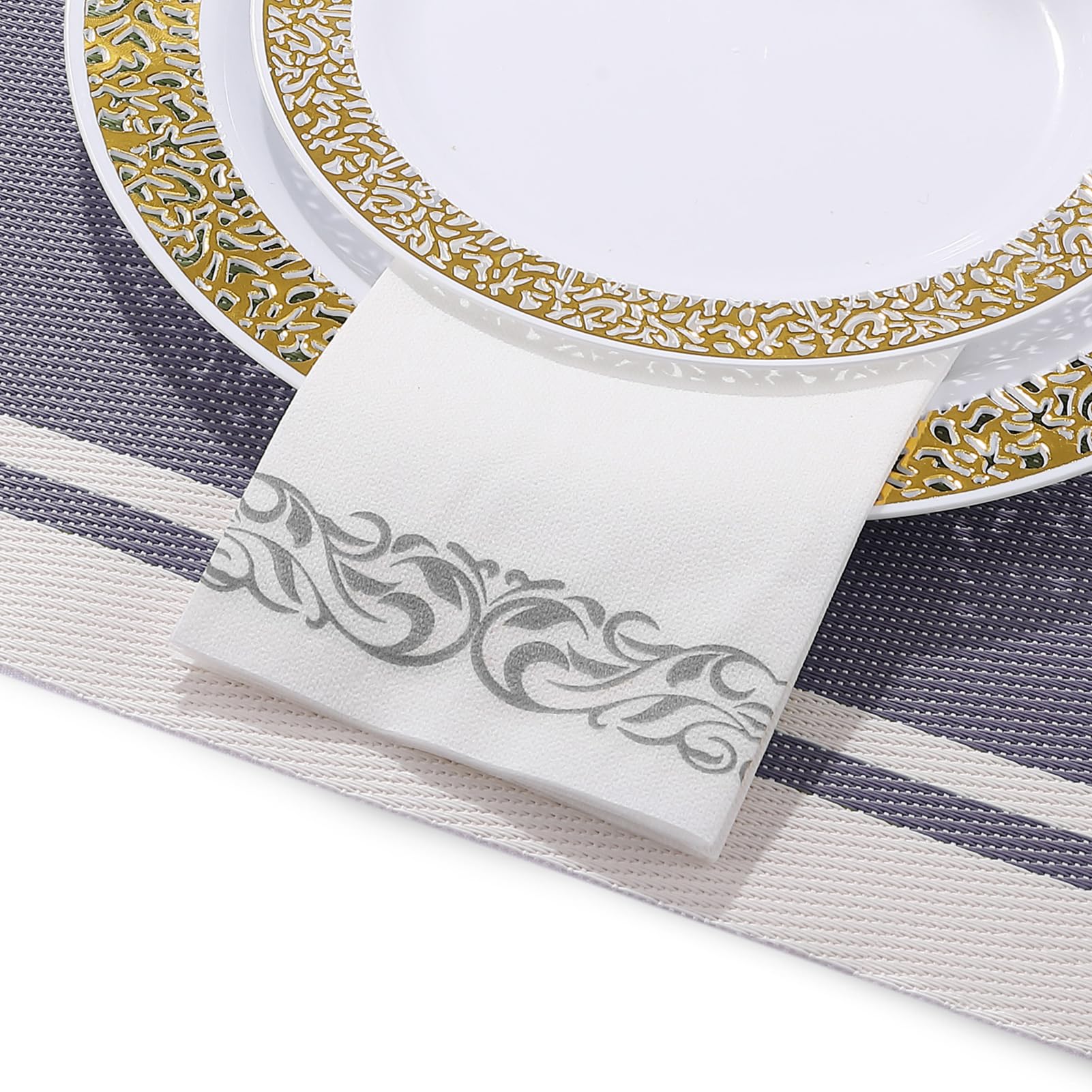 Elegant Decorative Napkins: The disposable hand towel is printed with a delicate gold pattern, which shows your fashion sense. After the unfolding, a side of the print is displayed in front of the eyes, which is more delicate than the ordinary one. Add charm and elegance to your dining table, bedroom, and bathroom.