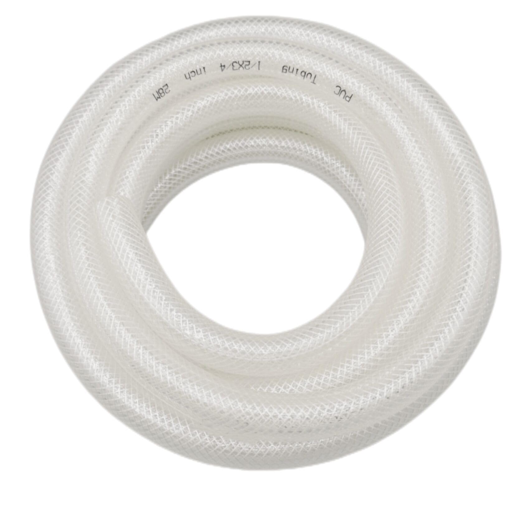 1/2" ID x 3/4" OD - 10 Ft High Pressure Braided Clear PVC Vinyl Tubing Flexible Vinyl Tube, Heavy Duty Reinforced Vinyl Hose Tubing