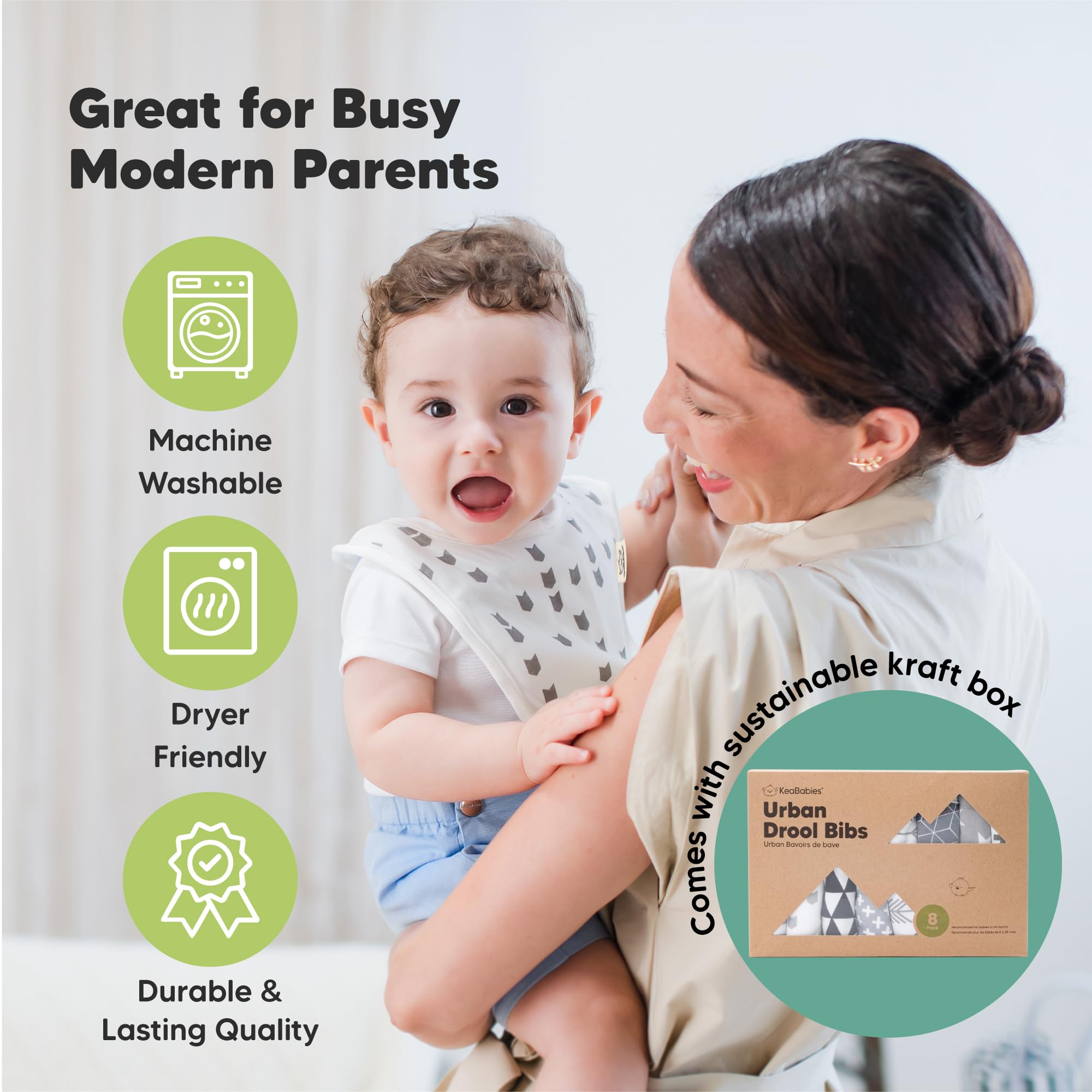 8-Pack Cute and Fun Baby Bibs for Boy and Girl - Our organic baby boy bibs and girl bibs are exclusively designed by KeaBabies to ensure that your baby never runs out of styling options. Our baby bibs are unisex and easy to match, making them a fuss-free teething baby essential.