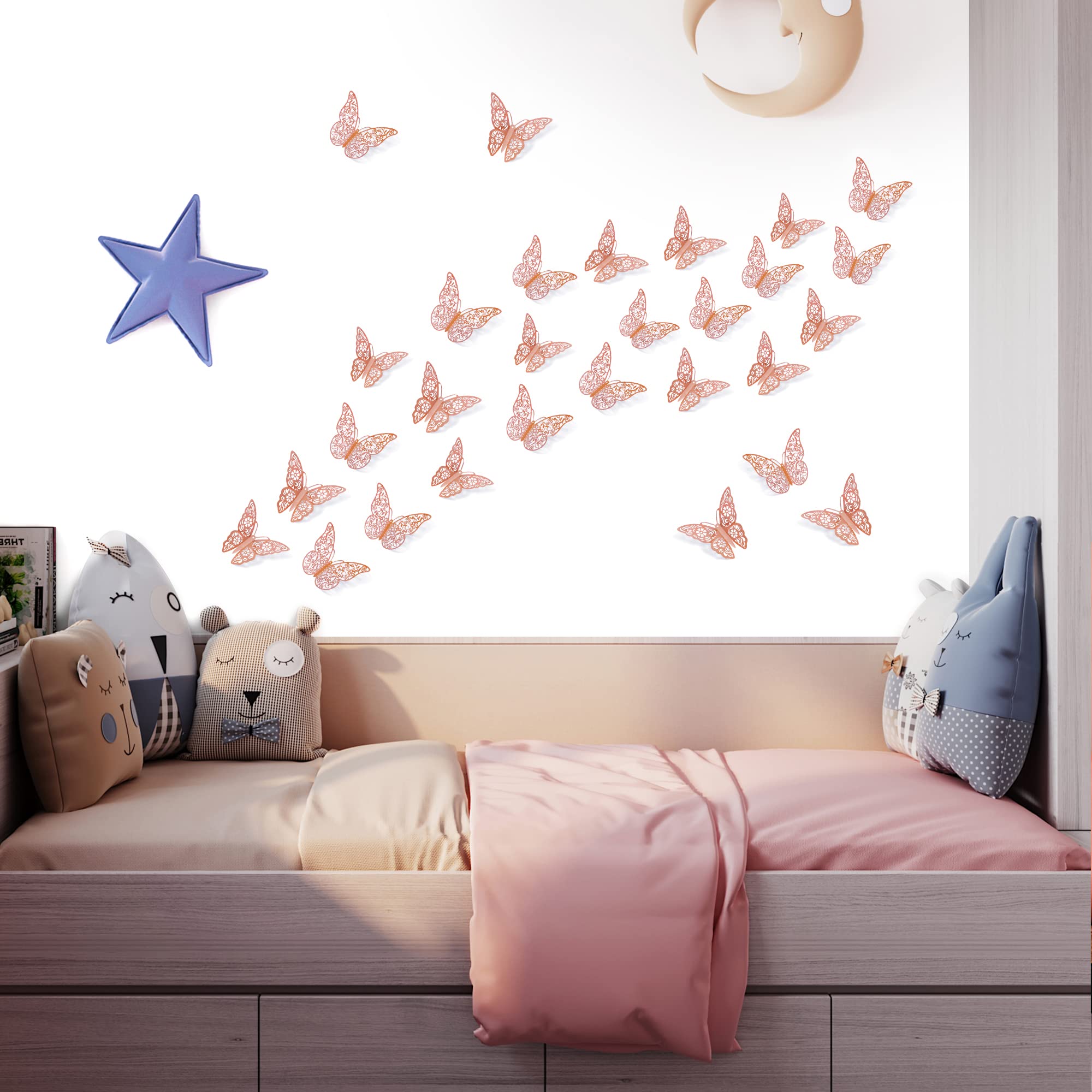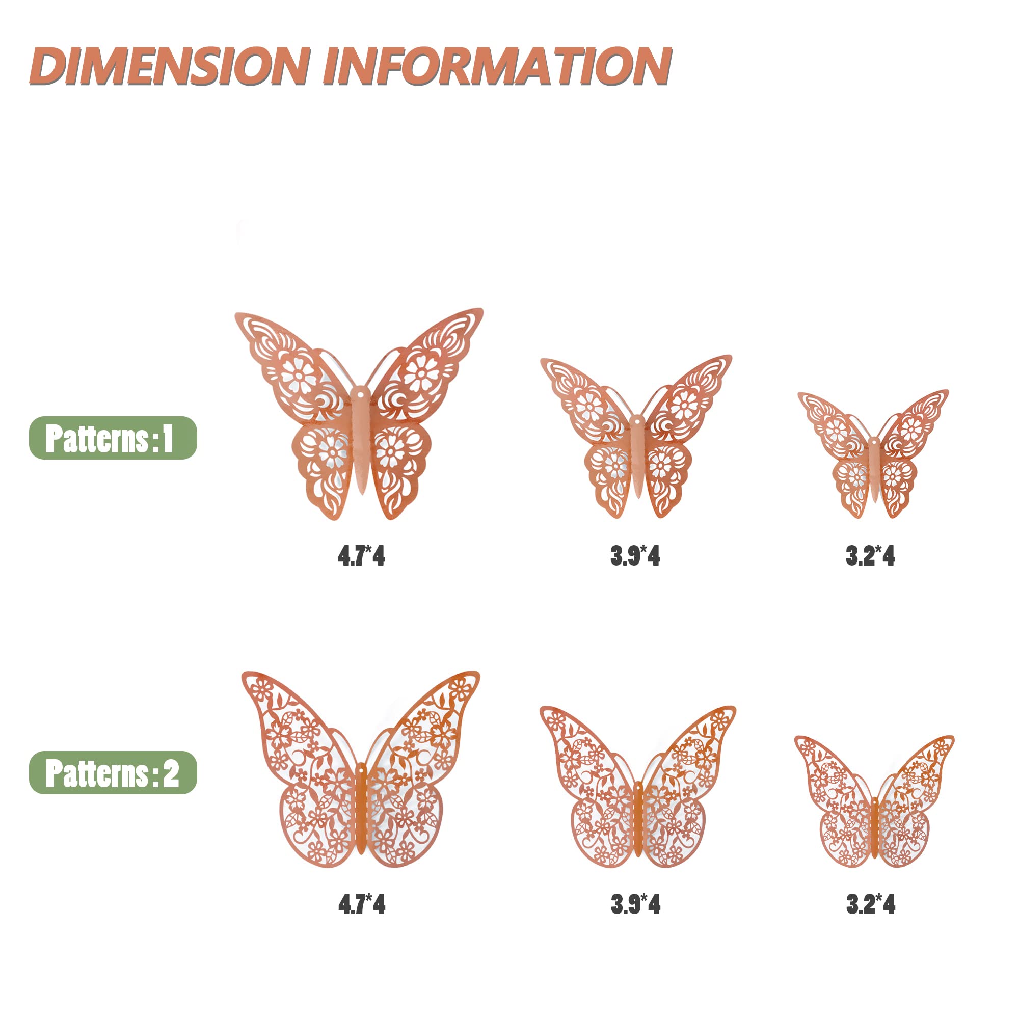 【Package Included】24 pcs butterfly wall stickers: 12 pcs Style 1, 12 pcs Style 2, each style has 3 sizes(3", 4", 5") and each size has 4 pcs. Coming with 24 pcs double sided adhesive dots.