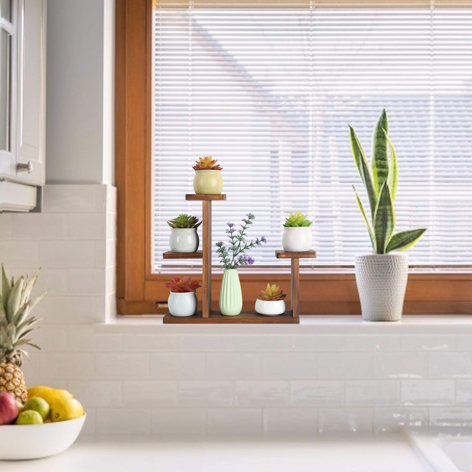 COOGOU Wood Desktop Plant Stand Indoor Small Windowsill Flower Shelf Tabletop Plant Shelf Holder Display Rack for Succulent Herb in Living Room Office