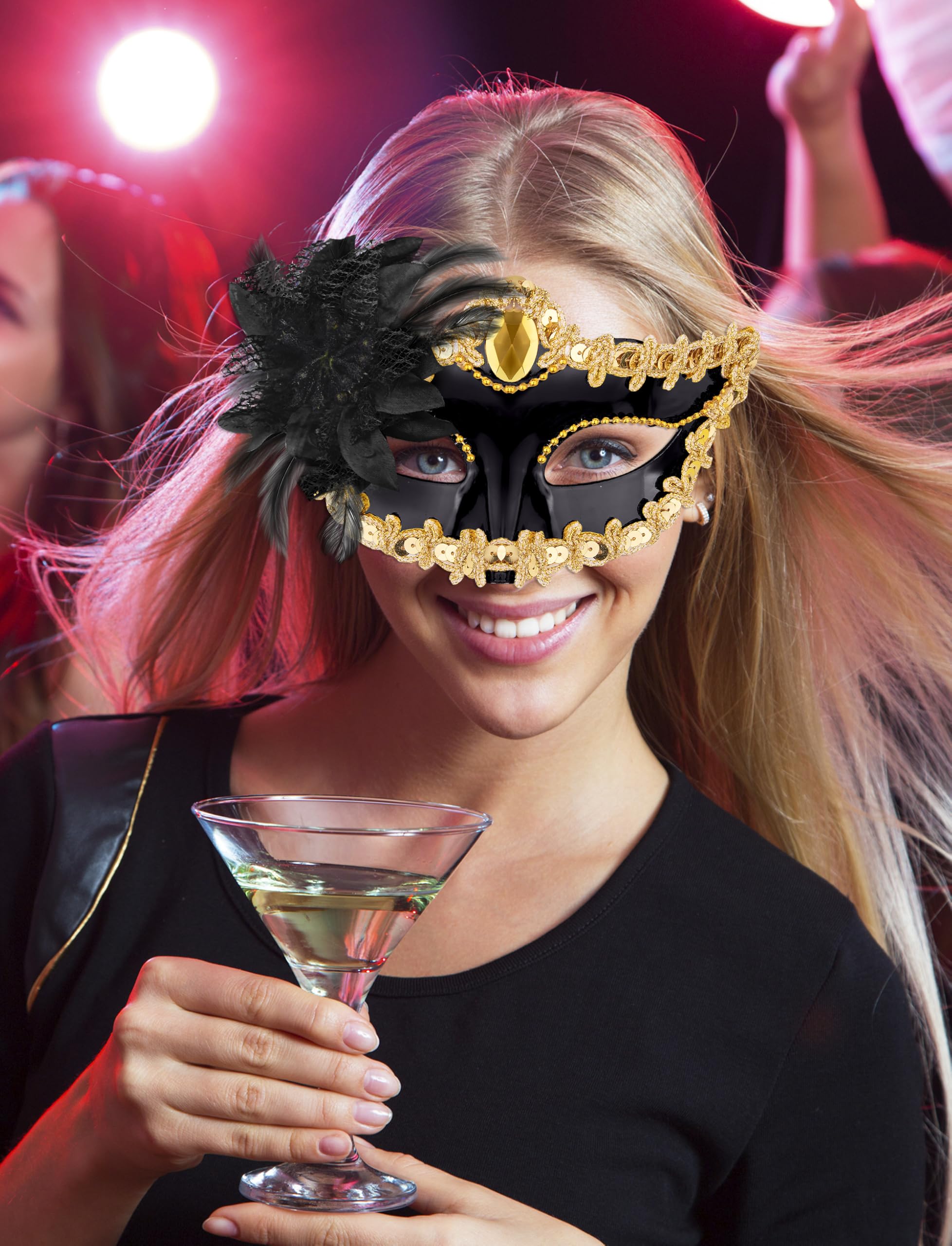 Proriate Size: the mardi gras mask is attached with a black ribbon band, convenient for adjustment according to your face shape to keep in position