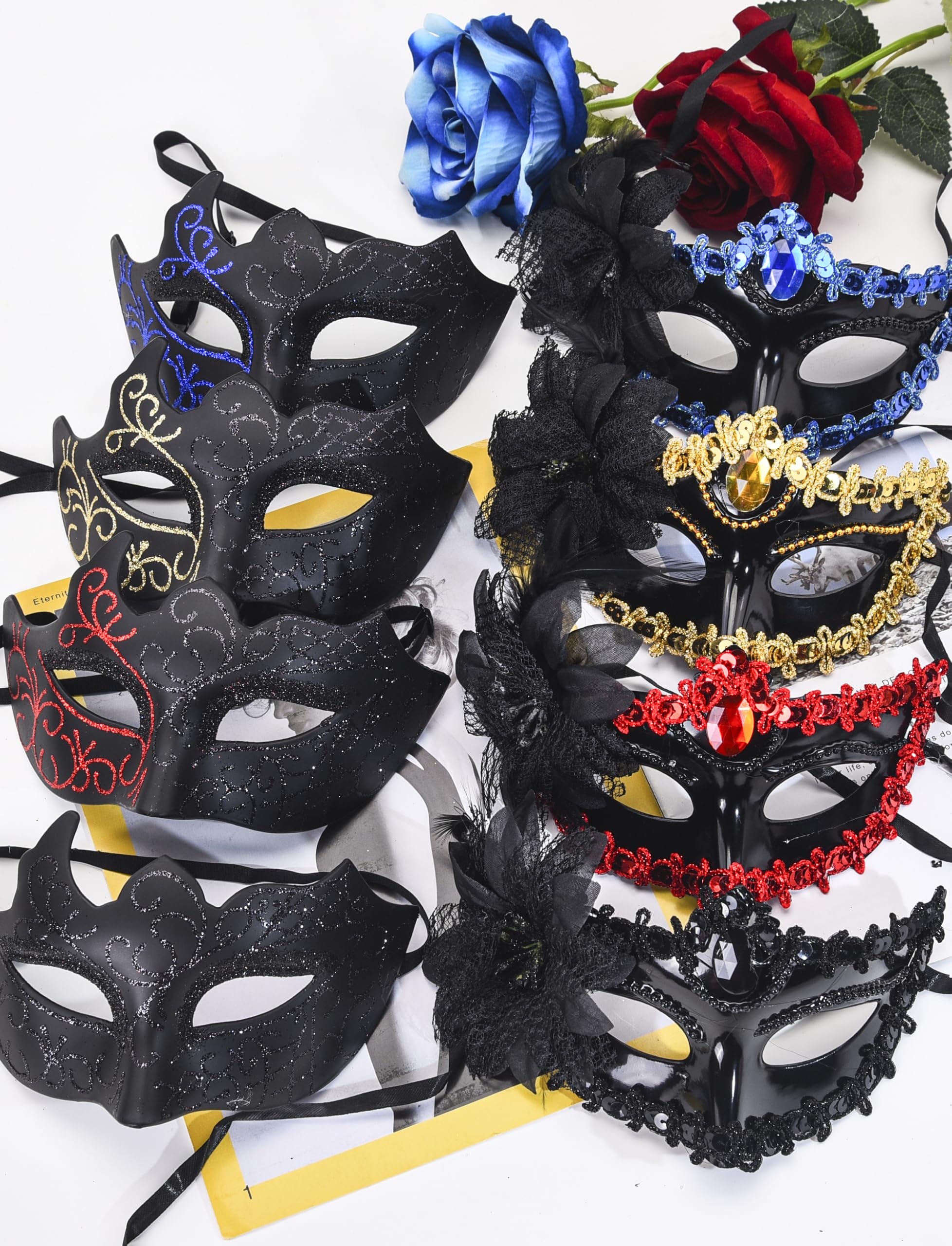 Wide applications: this masquerade mask set is perfect for many activities and occasions, such as carnivals, masquerade, cosplay, party ball, night club, wedding reception, stage show and so on