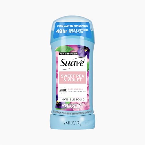Experience the reliable freshness of Suave Powder Invisible Female Antiperspirant Deodorant Stick, expertly crafted to keep you feeling fresh and confident morning to night. This improved formula deodorant delivers reliable 48-hour protection against sweat and odor, with a fresh powder fragrance. Talc-free with 20% more “sweat-stopping” ingredients than our original formulation, our antiperspirant deodorant for women ensures maximum effectiveness without compromising comfort. The invisible, anti-staining female deodorant stick applies smoothly, leaving no white marks on your clothes, so you can wear what you love without worry. Suave Powder is designed to be gentle on sensitive skin while effectively combating sweat and odor, providing reliable protection and comfort for everyday use. Choose from a variety of fragrances, including Aloe & Rose Water, Cocoa Butter & Shea, Everlasting Sunshine, Mango Citrus, Powder, Fresh, Sweet Pea & Violet, Tropical Paradise, and Wild Cherry Blossom, to find the perfect match for your lifestyle. Committed to quality and accessibility, Suave empowers everyone to look, smell, and feel their best every day. Plus, with our cruelty-free certification from PETA, you can feel good about your choice. For over 75 years, Suave has offered professional quality haircare and skincare products for the entire family. The Suave mission is to make gold standard quality attainable to all, so everyone can look good, smell good, and feel good every day.