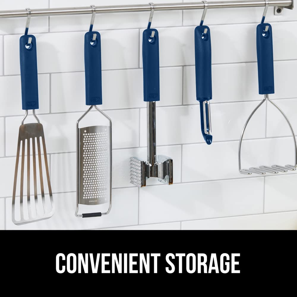 PATENTED ERGONOMIC, SLIP RESISTANT HANDLE: featuring an ergonomic, soft touch rubber handle, peeling has never been more comfortable; our unique slip resistant handle helps you keep a firm grip; oversized design measures nearly 8 inches, making the vegetable peeler an ideal size for even the toughest produce