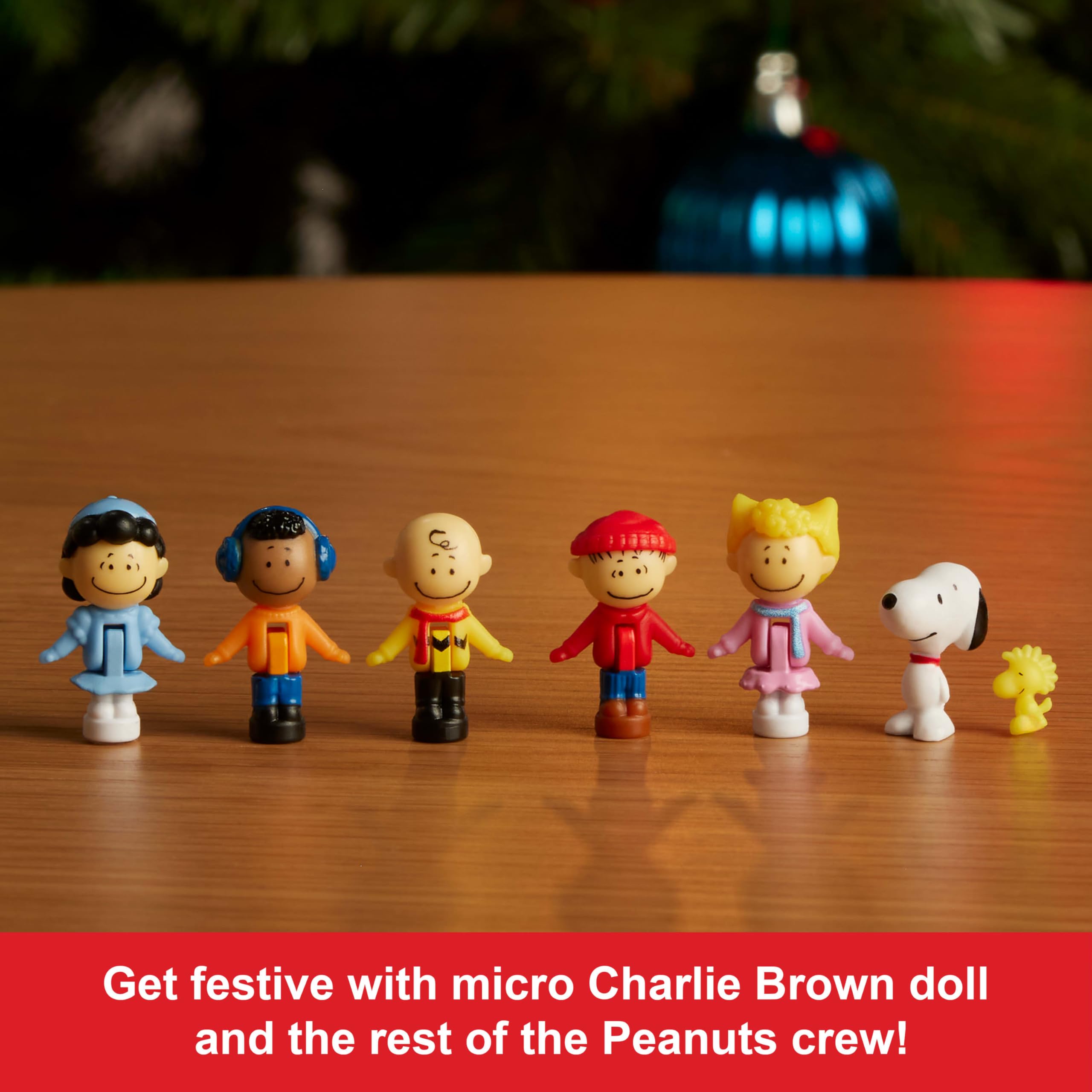 Good grief! Polly Pocket and the Peanuts gang come together in this collector compact for a holiday-themed adventure. Inside, discover a winter wonderland with so many familiar faces! Reenact scenes and shenanigans with favorite characters like Charlie and Sally Brown, Lucy, Linus, Franklin, Woodstock, and Snoopy – all in micro form! Surprise and delight with Easter Egg features like a dog bowl sled race and a tiny Woodstock figure that can clip throughout the compact. This collectible keepsake is ideal for Polly Pocket and Peanuts fans alike. Colors and decorations may vary.