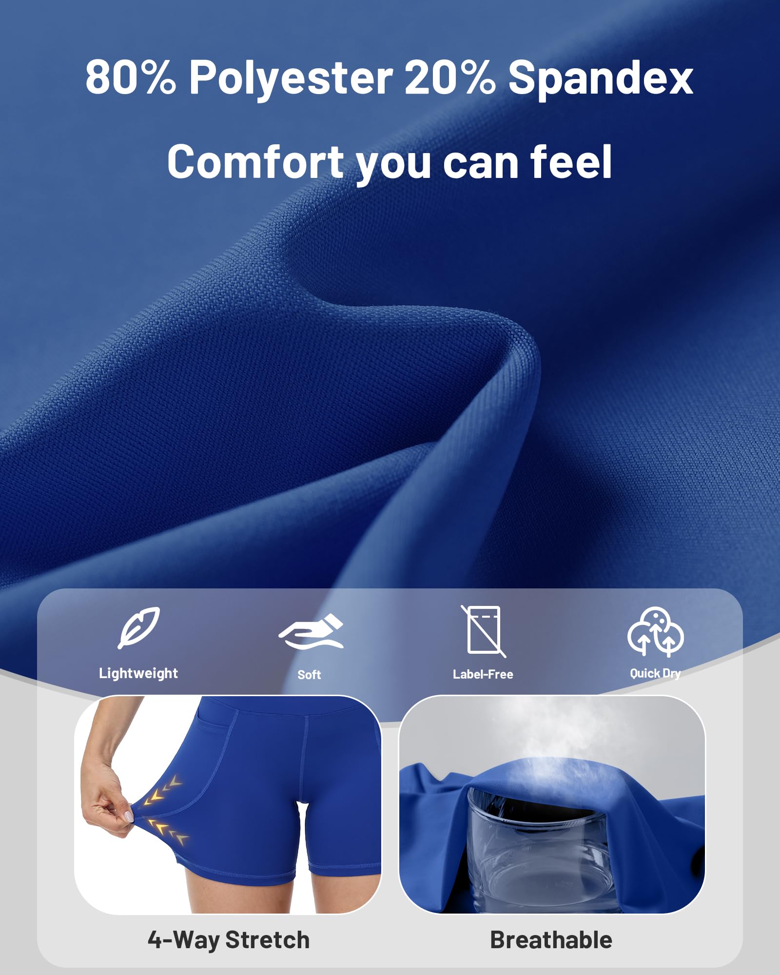 Breathable & Stretchy Fabric: Made with 80% polyester and 20% spandex, these womens biker shorts offer a silky-soft feel, stretch, moisture-wicking, and breathability for ultimate comfort during workouts