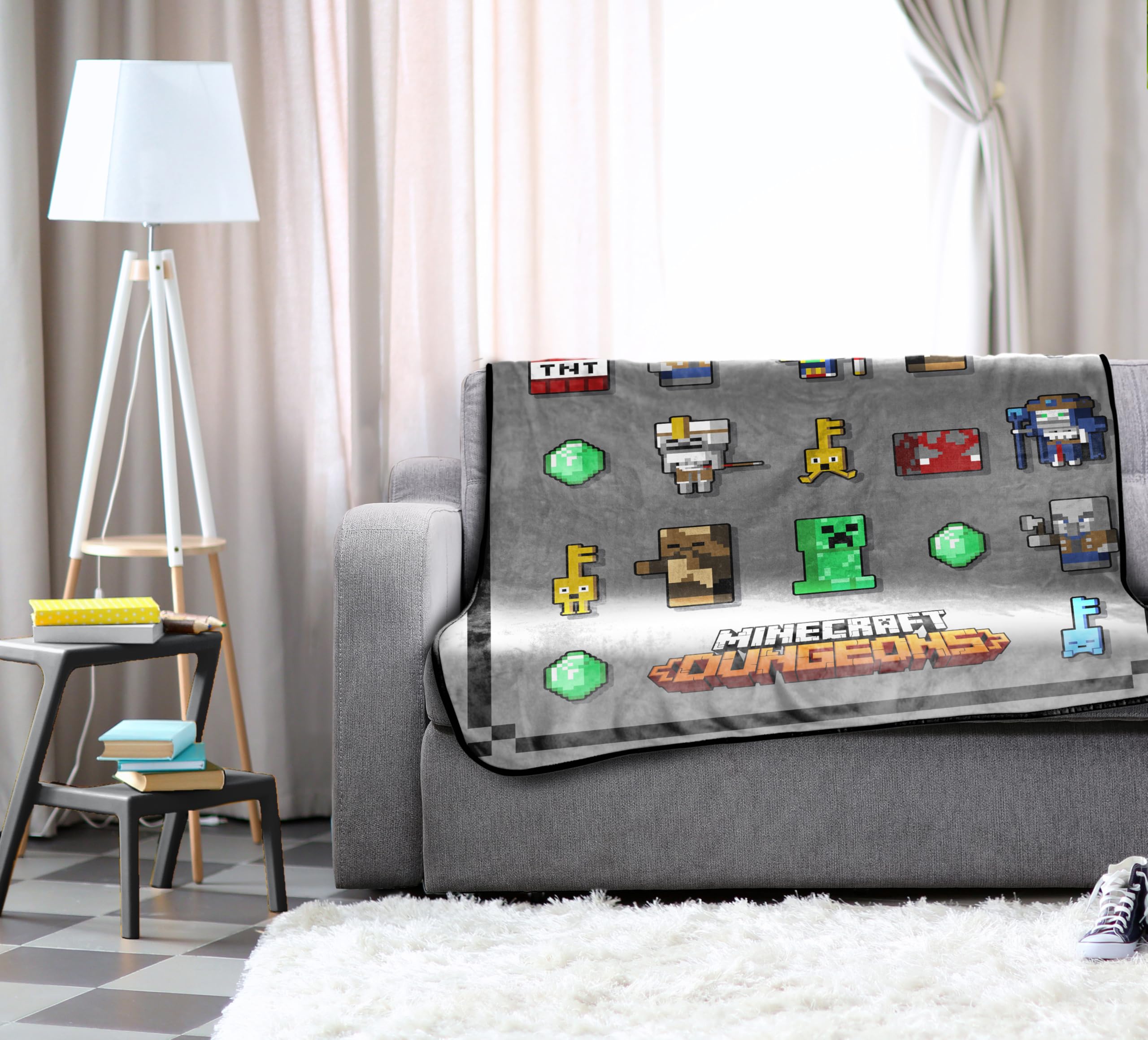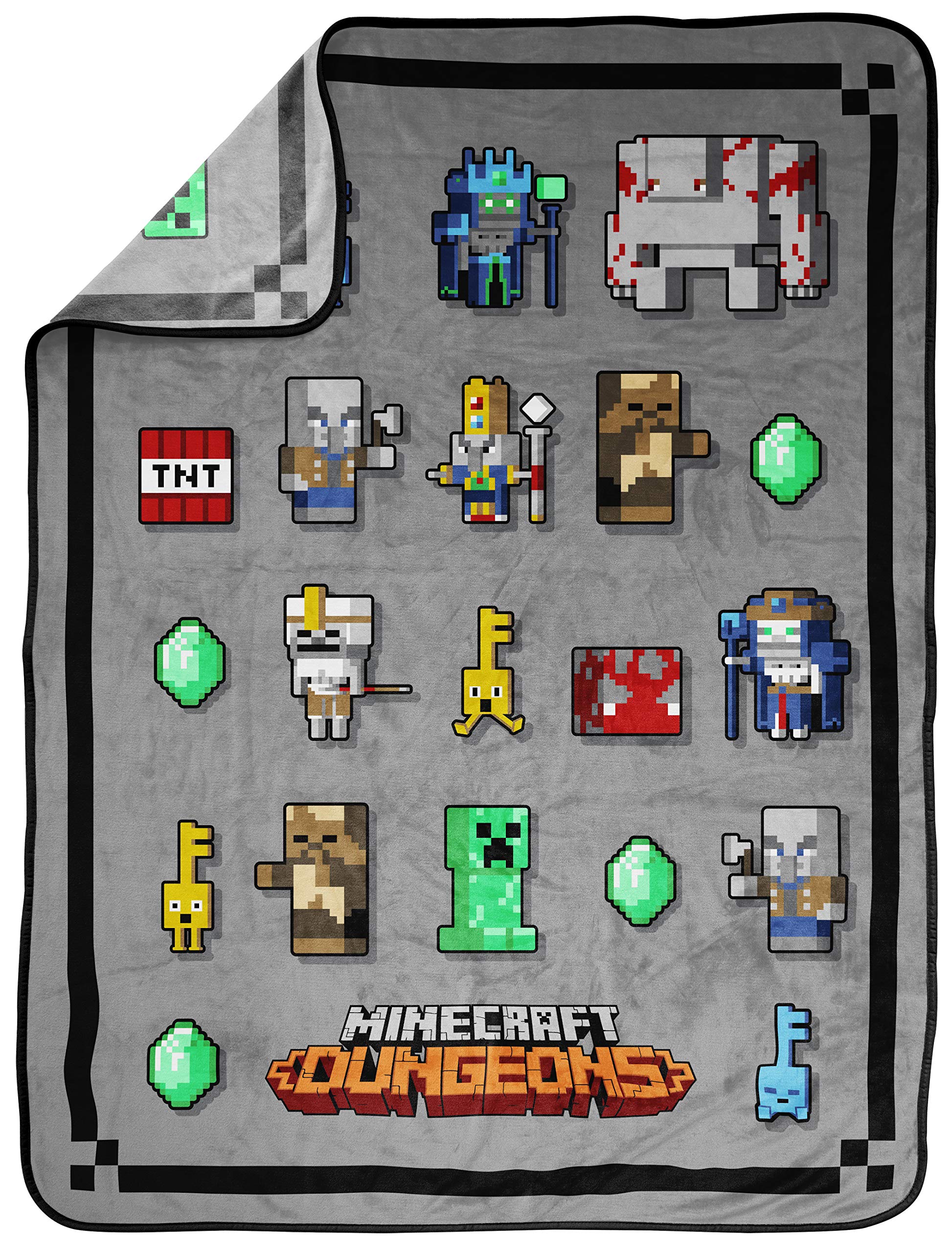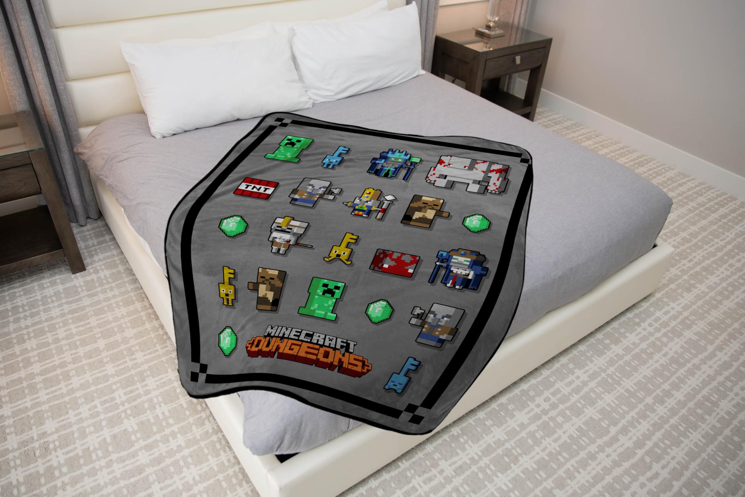 PERFECT FIT & FUN DESIGN - Minecraft Dungeons fleece throw measures 46 x 60 inches. Add a touch of decorative enchantment to your room with our fashionable and super soft Minecraft Dungeons throw blanket. Fun and colorful design features your child’s favorite mobs Creeper, Skeleton Vanguard, Nameless One, Redstone Cube, Redstone Golem, and Key Golem.