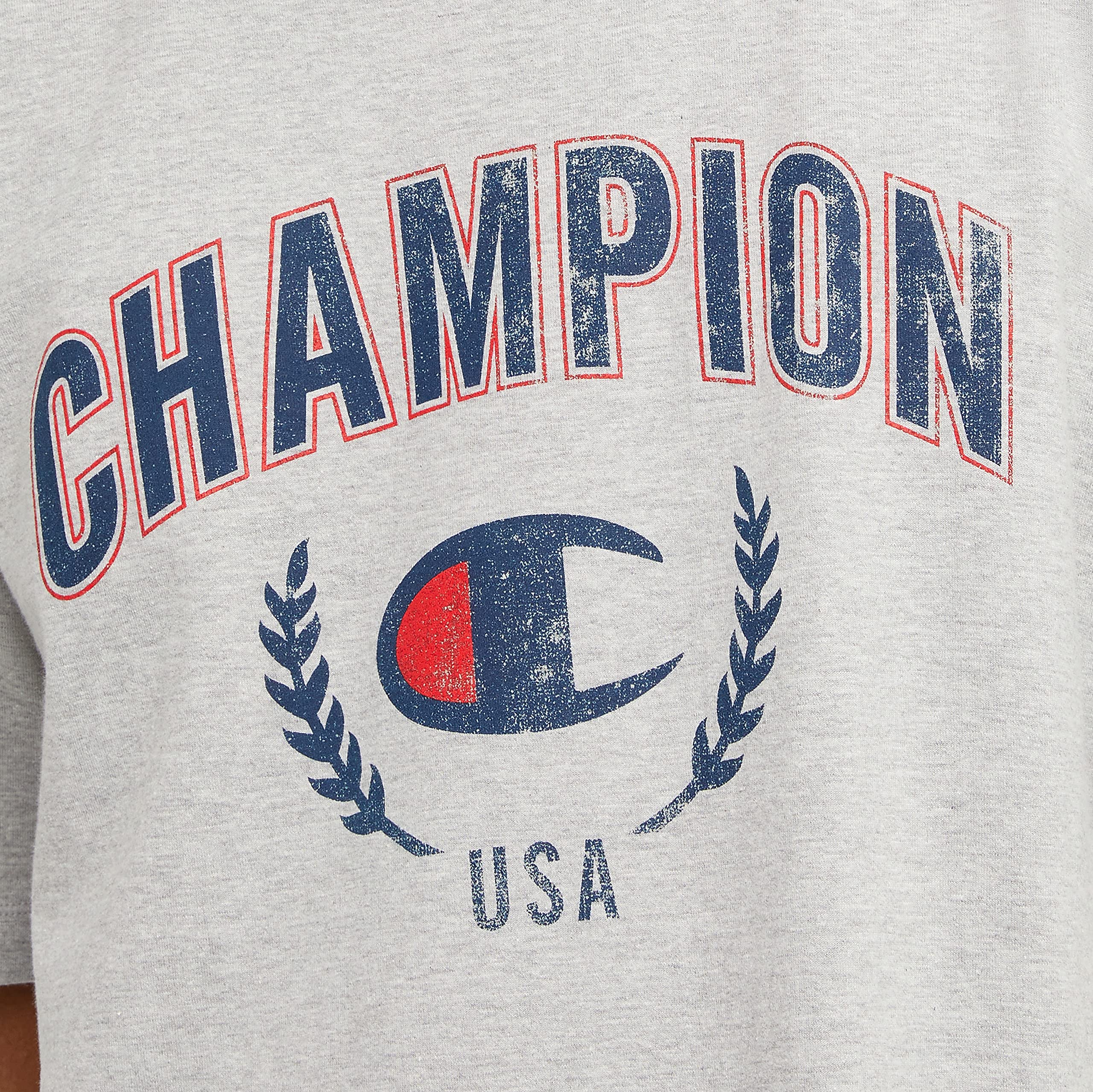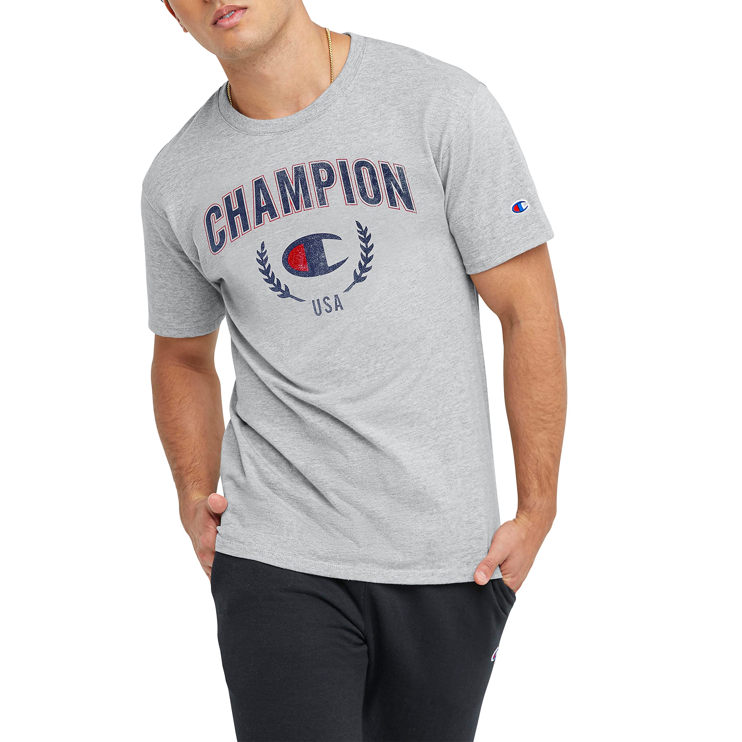 Description ALL-STAR STYLE. Outshine the competition with star graphics that bring the style. With unmatched comfort and softness, our graphic T-shirt for men is your best companion, from sport to street. Crafted with attention to detail and built to be a longtime favorite, it has a ribbed collar and sturdy stitchwork. Iconic C logo hits at the sleeve, showing everyone what youβre all about. Pair this menβs T-shirt with your favorite Champion joggers and shorts for a rounded out sporty look that canβt go wrong.