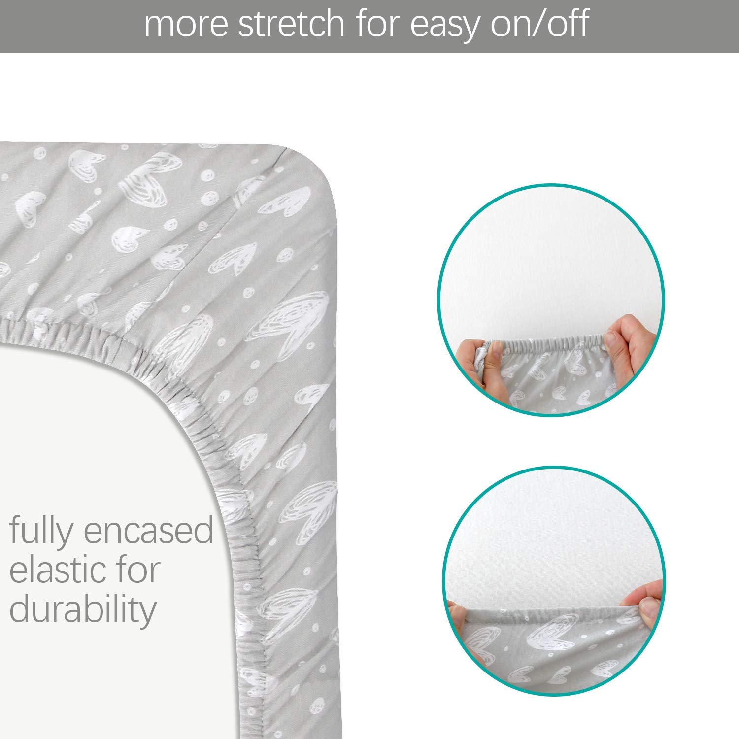 Ultra soft: The bassinet fitted sheet is made of 100% lightweight cotton jersey, extremely soft to the touch, breathable and stretchy, keeps your baby comfortable and cozy!