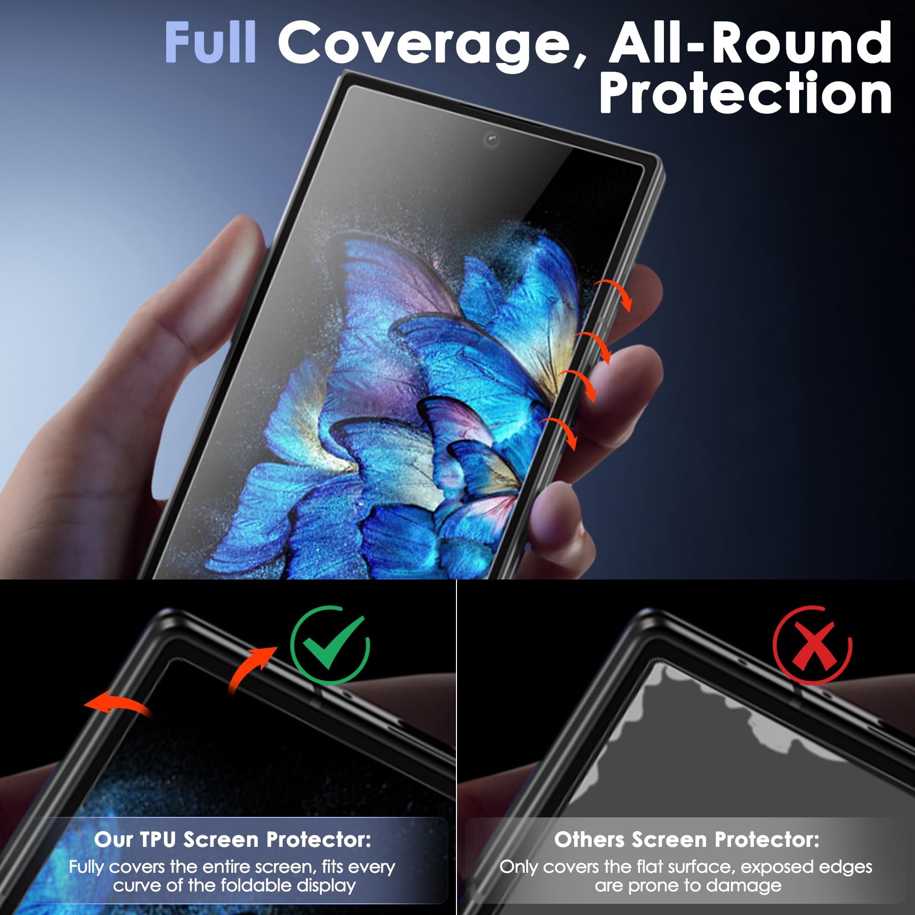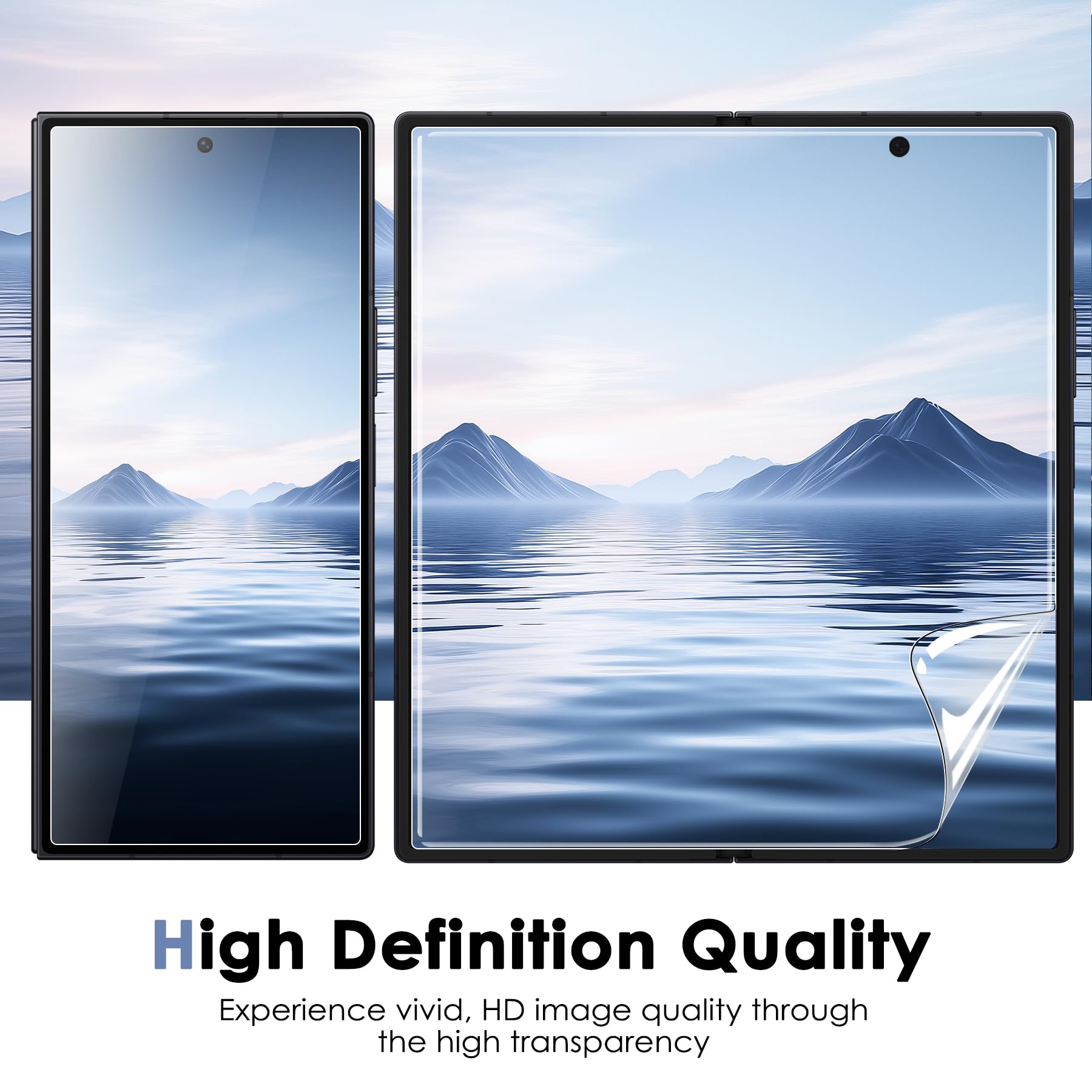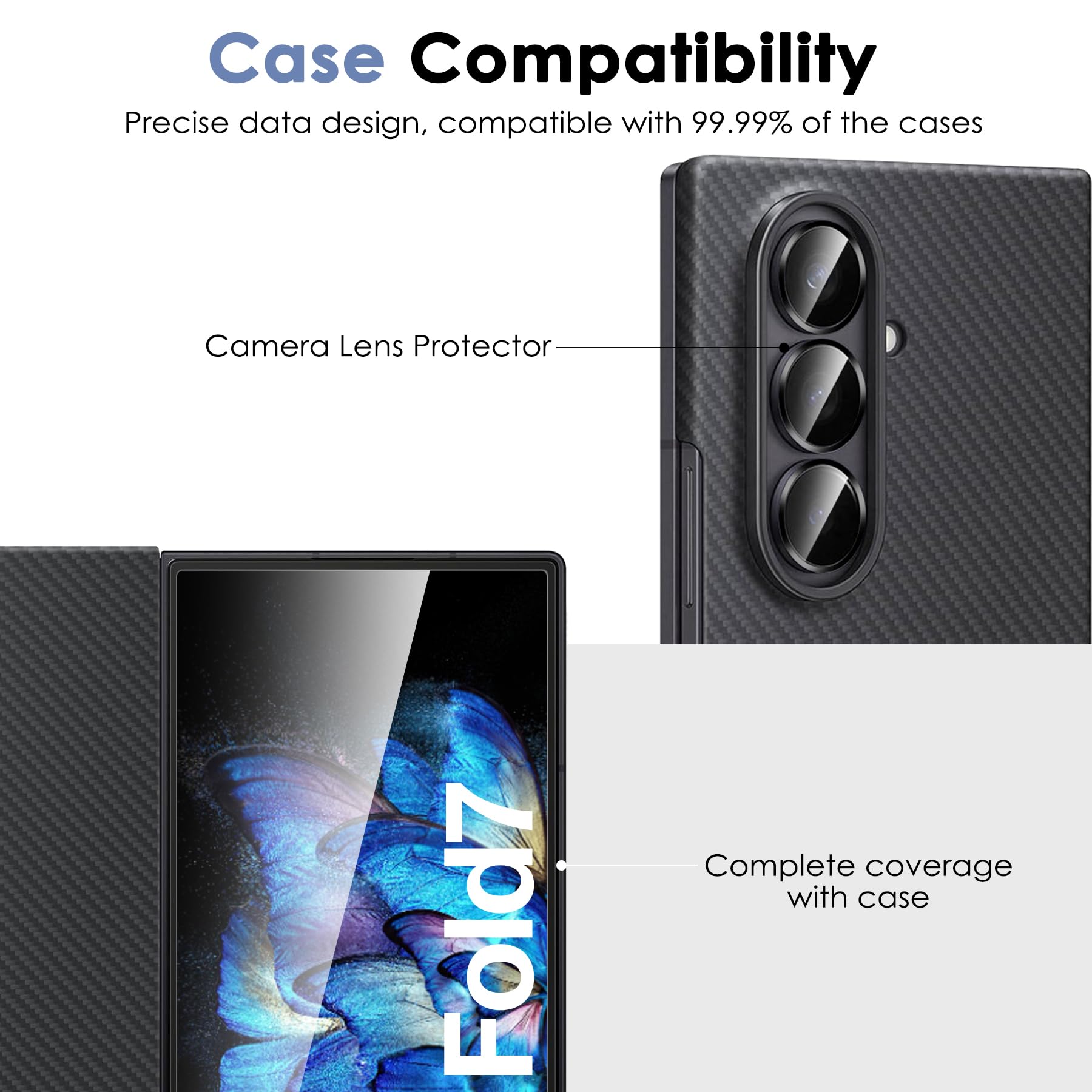 Perfect 3+3+3 complete protection kit includes flexible EPU inner screen protectors, 9H tempered glass back screen protectors, and camera lens protectors, specially designed for Samsung Galaxy Z Fold 7.
