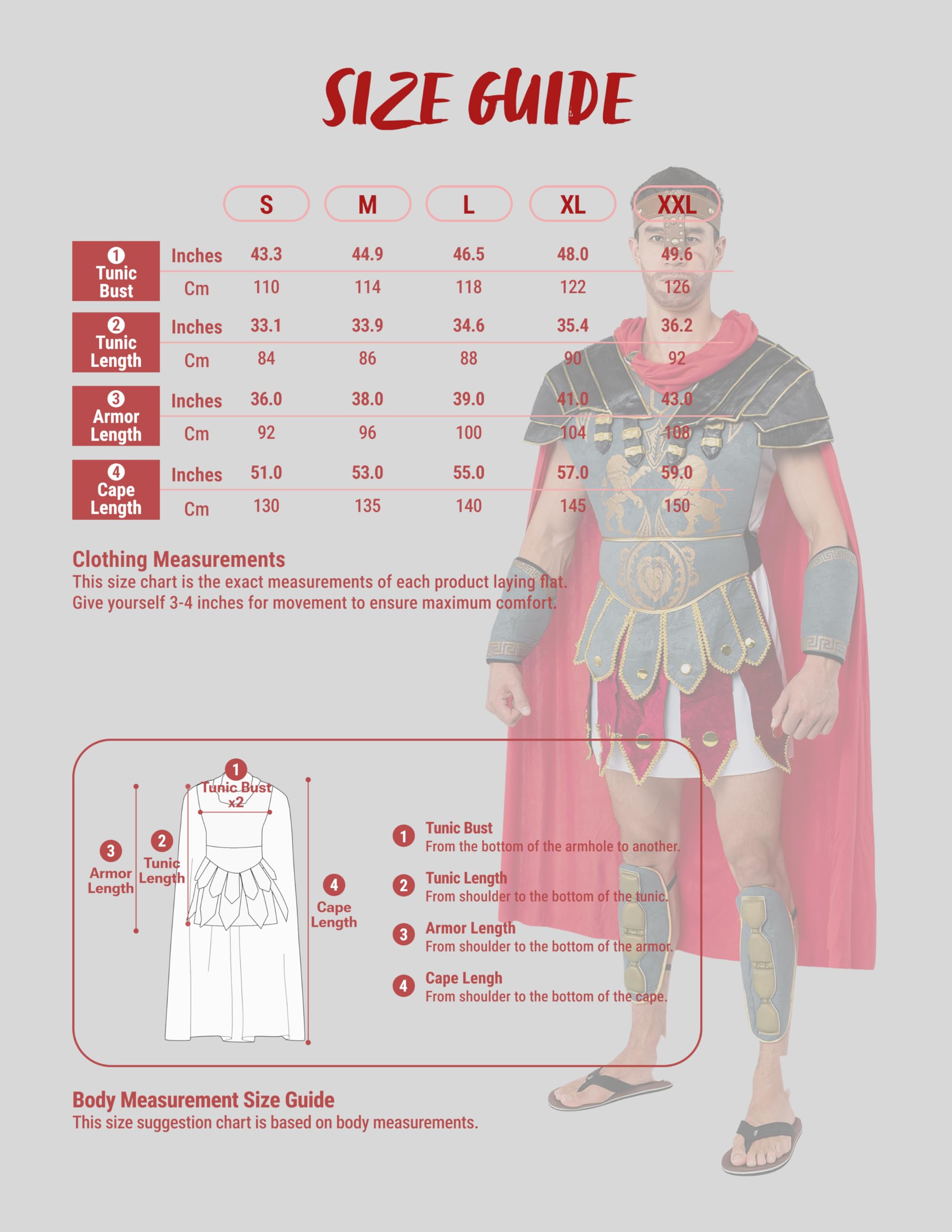 Description Spooktacular Creations Brave Men’s Roman Gladiator Costume Set for Halloween Audacious Dress Up Party Noble Medieval Roman Gladiator Toga Costume for Men, includes Tunic, Body Armor w/ Attached Belt and Cape, Shoulder Guards, Wrist Guards, Leg Guards and Two pin on Medallions! Not included: Sword, Shield and Sandals. Roman Empire Heroic Gladiator Spartan Warrior Costume Deluxe Set. Realistic Looking, Super Durable. Higher Quality. 100% Polyester. Highly Recommend Hand Wash. Safety Test Approved. Super Value Pack for Roman Empire Gladiator Costume Role Play and Party Supplies. Excellent for Halloween Costumes Dress Up Parties, Centurion Uniform, 300 Spartan Soldier Warrior Outfit, Adult-Hercules Costume, Medieval Knight costume, Ultimate Warrior Costume, Game of Thrones Costume, Roman Soldier Reigns Adult Costume, Renaissance Toga Costume Men, Roman Emperor Armor Army Costume, Royal Roman and Greek Guard Costume, Ancient Roman Legionary King Costume, Prince Costume Adult Accessories, Alexander The Great Costume, Caesar Costume, Spartacus Costume, Greece Outfit, Mark Antony Costume Cosplay, Mens Costume Games Role Playing, Once Upon A Time Themes costume Party, Thanksgiving, Christmas, Mardi Gras, Easter, Trick or Treat costume, Theater Plays, Pretend Play, Outdoor Activity, Play period Everyday and More! Size: Small, Medium, Large, X-Large, XX-Large