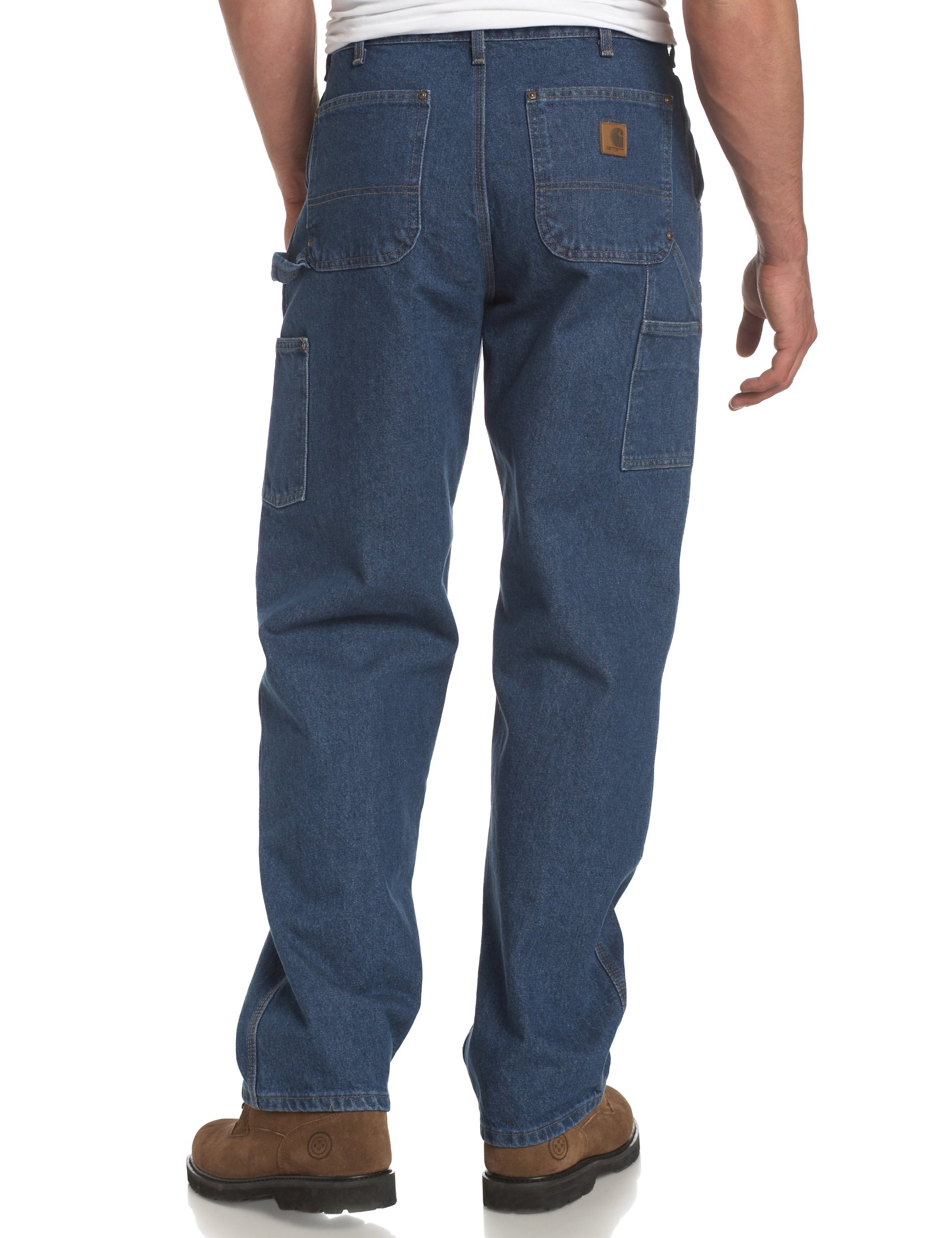 Description Built for long wear with chap-style leg panels, carhartt's double-front work dungaree also features double knees with cleanout bottoms that accommodate knee pads, Constructed of heavyweight 12-ounce, 100 percent ring-spun cotton duck, the dungaree sits at the natural waist and is cut with a full seat and thigh, It includes multiple tool and utility pockets, plus a hammer loop, Leg openings measure 19-inches to fit over work boots