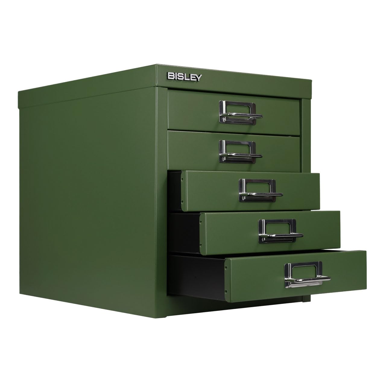 Bring sleek efficiency to your workspace with the Bisley 5-Drawer Steel Desktop Cabinet, a compact yet powerful solution for keeping your essentials in order. Built from durable, high-grade steel, this stylish storage unit is ideal for organizing everything from office accessories and art supplies to beauty products and small tools. Whether you're managing a home office, crafts room, or simply love staying neat, this drawer system blends design and practicality in one tidy package. Standing just over 12 inches tall, this space-saving organizer fits comfortably on desks, counters, or shelves without crowding your area. Despite its small footprint, it offers five spacious, fully removable drawers for customizable storage. Organize stationery, sort sewing threads, or stash makeup — each drawer adapts to your needs. Optional tray inserts are available separately to help sort items even more precisely. Each drawer includes a polished chrome handle for smooth access and a matching label holder so you can identify contents at a glance. Non-slip rubber feet underneath the cabinet keep it firmly in place and protect surfaces from scratches or scuffs.