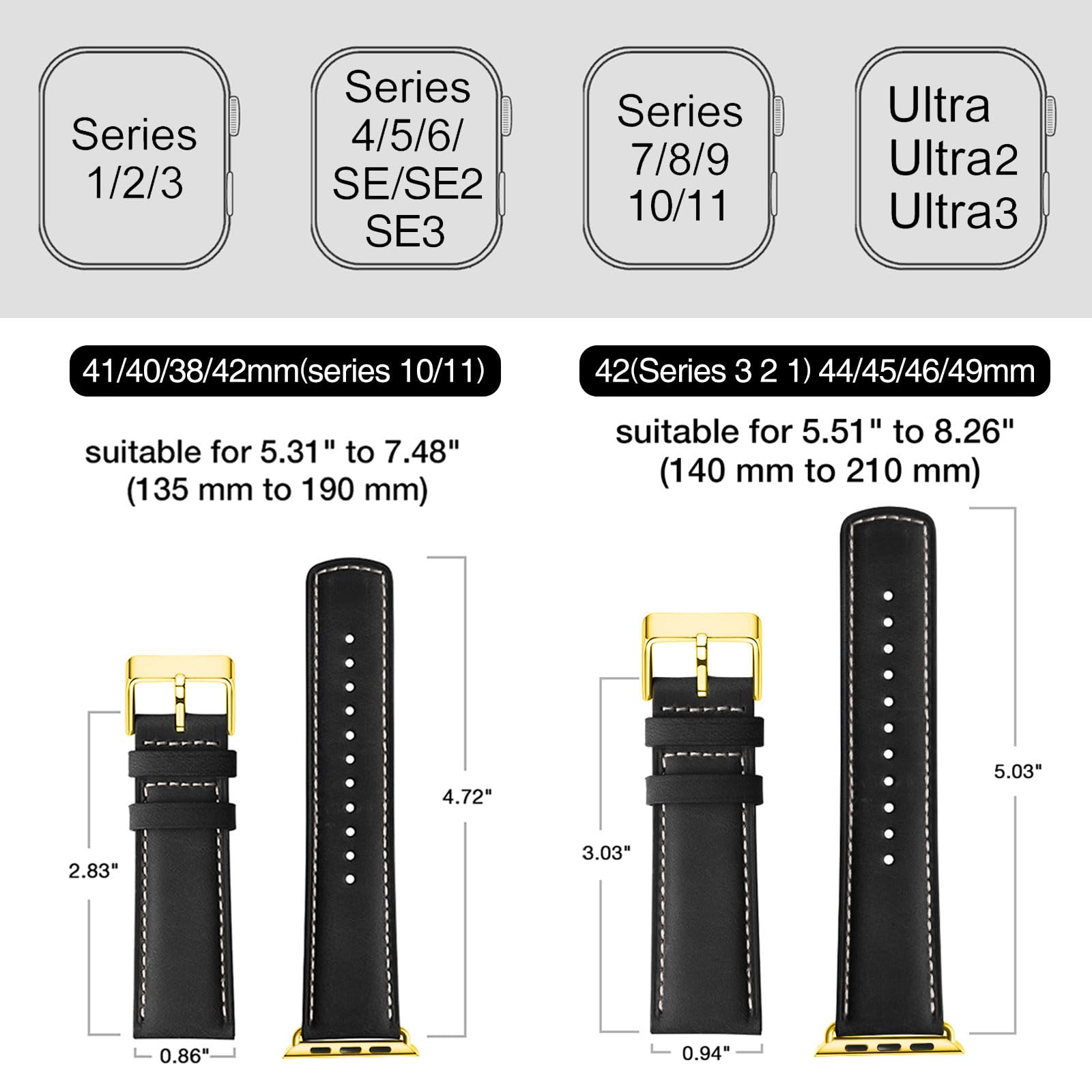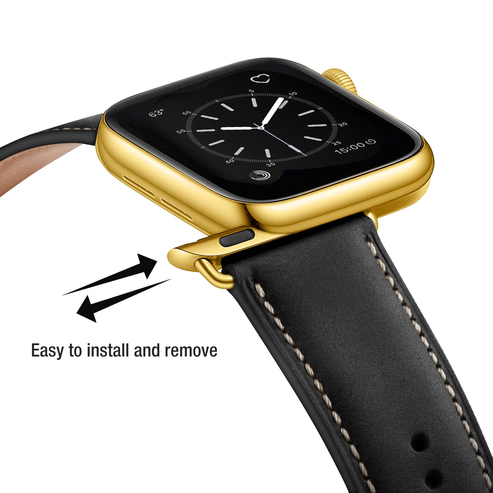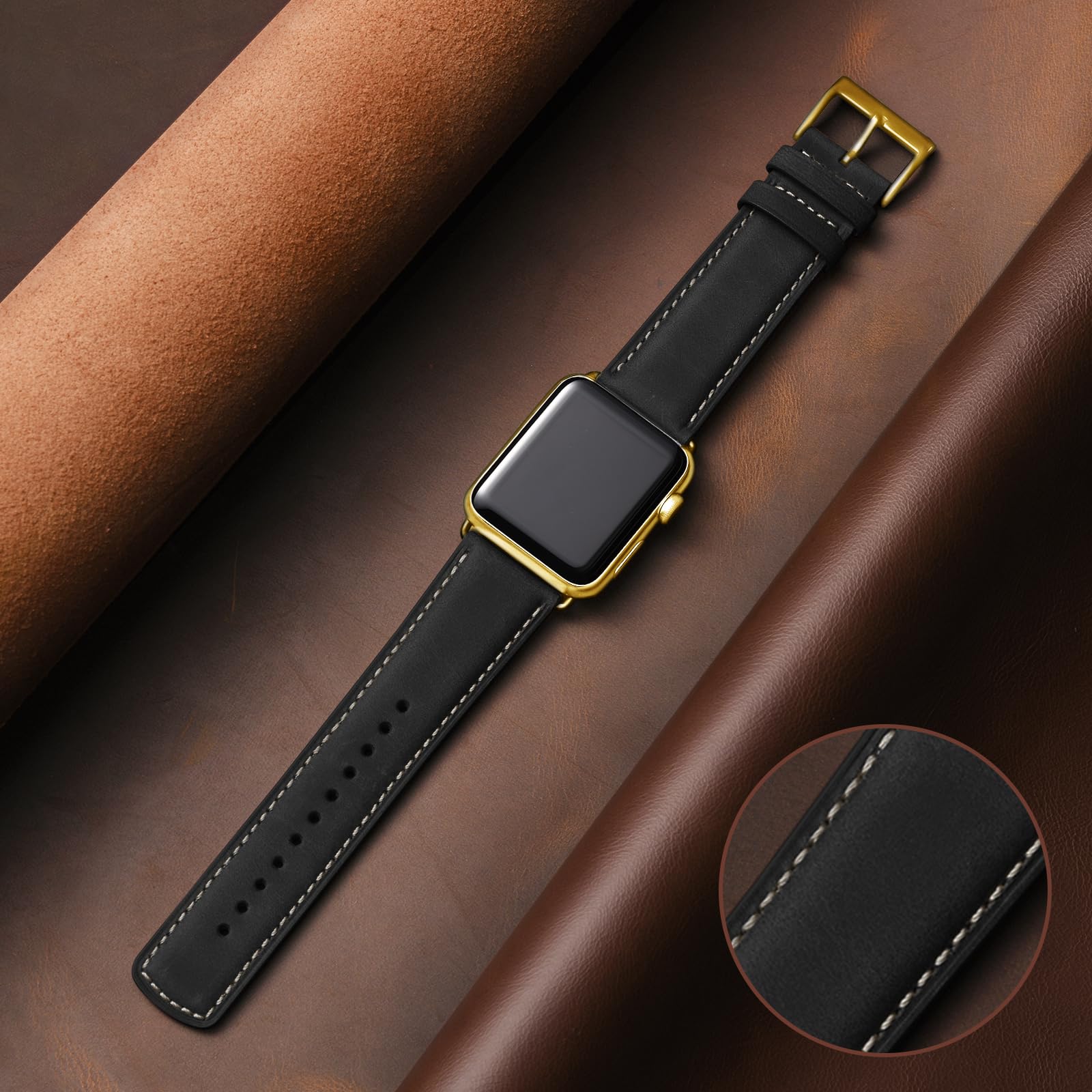 Safe and Sturdy: Our leather apple watch band is built to last, thanks to its high-quality stainless steel buckles and adapters, meticulous stitching, and oil-sealed edges. These features ensure that the band is safe and sturdy, providing long-lasting durability and exceptional quality