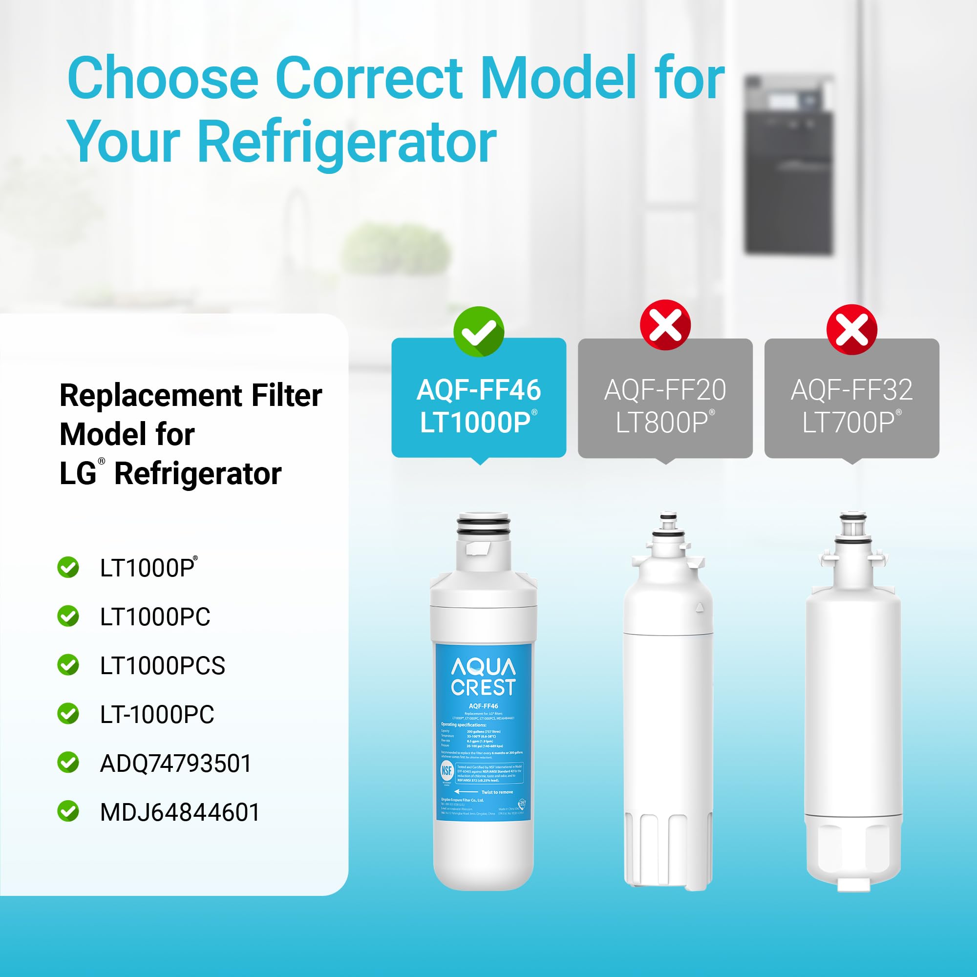 Note: This filter is replacement for LG LT1000P, not replacement for LG LT700P or LG LT800P. Please double check before purchasing.