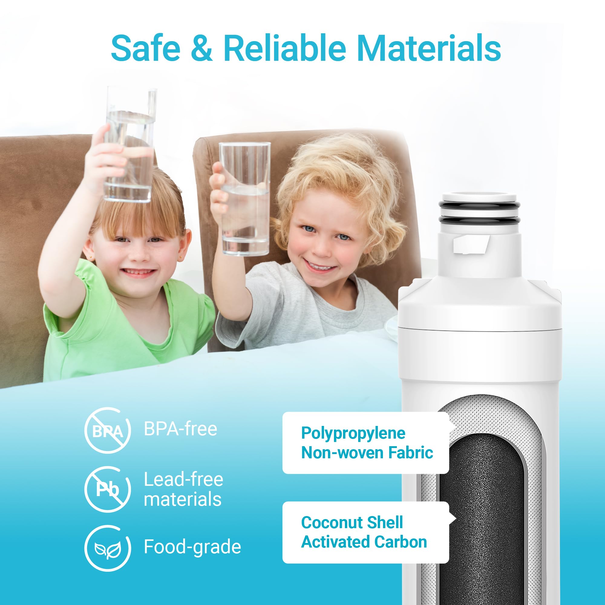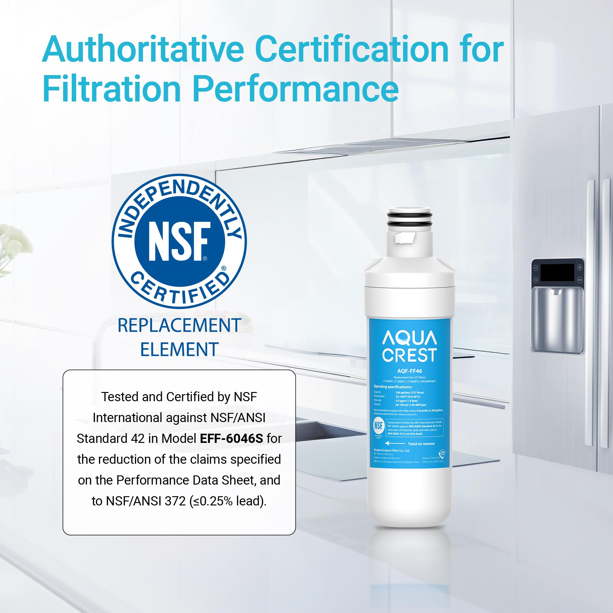 What you get in this AQUA CREST refrigerator water filter is an excellent prior filtration performance that stands on par with what you get from the original brand, backed by the standard NSF 42 and 372 certifications. Unlike the generic brands, our refrigerator water filter relies on the 100% superior coconut shell carbon block to get rid of different types of impurities from your water.