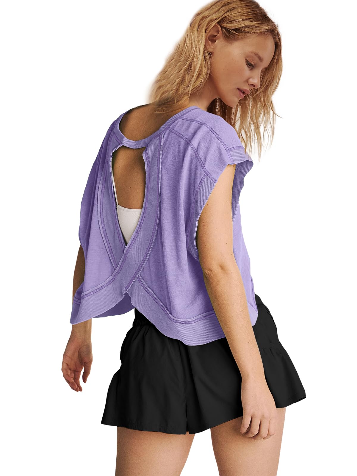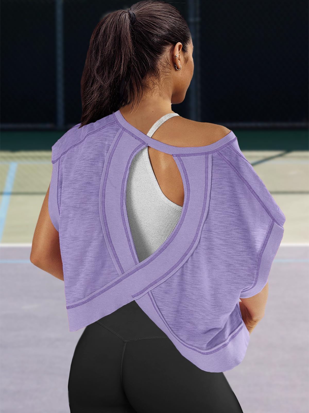 Occasion: Embrace comfort and style effortlessly. This short sleeve open back tops is perfect for going to or from a workout, this tee features a soft fabrication, slouchy crop and flattering back opening. Its adaptability blends seamlessly with your lifestyle.