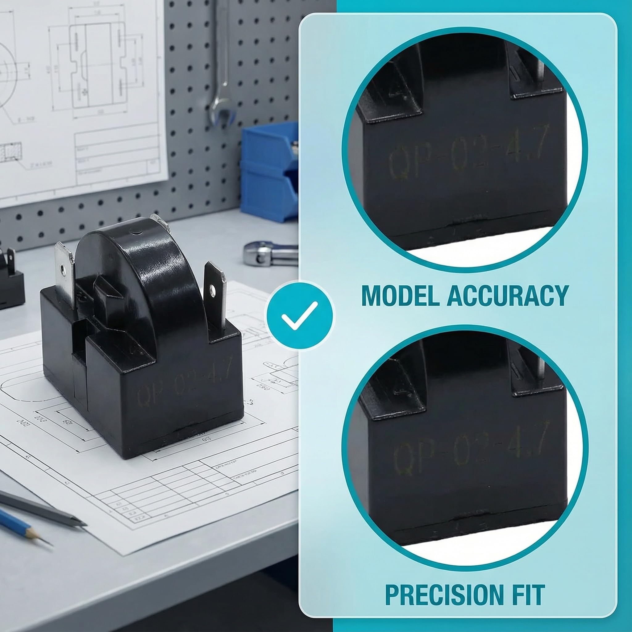 Product Name: QP2-4.7 Start Relay; Material: Plastic; Color: Black; Resistance : 4.7 Ohm; Pin Quantity: 3; Easy to install; PLEASE NOTE: the item is compatible ONLY to QP2-4R7 three-terminal relay.