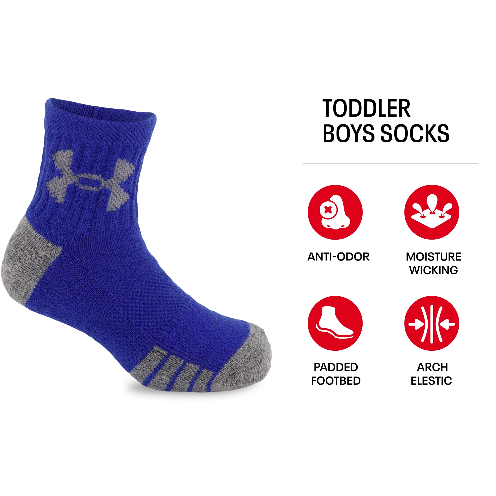 FEATURES: Under Armour Socks features a padded footbed, arch elastic, and anti-odor. Whether you are playing a sport, such as football, soccer, softball, baseball, lacrosse, field hockey, volleyball, rugby, and all other athletic activities. They are perfect cozy childrens socks for school gym and recess, or simply to put some flash into your child's outfit.