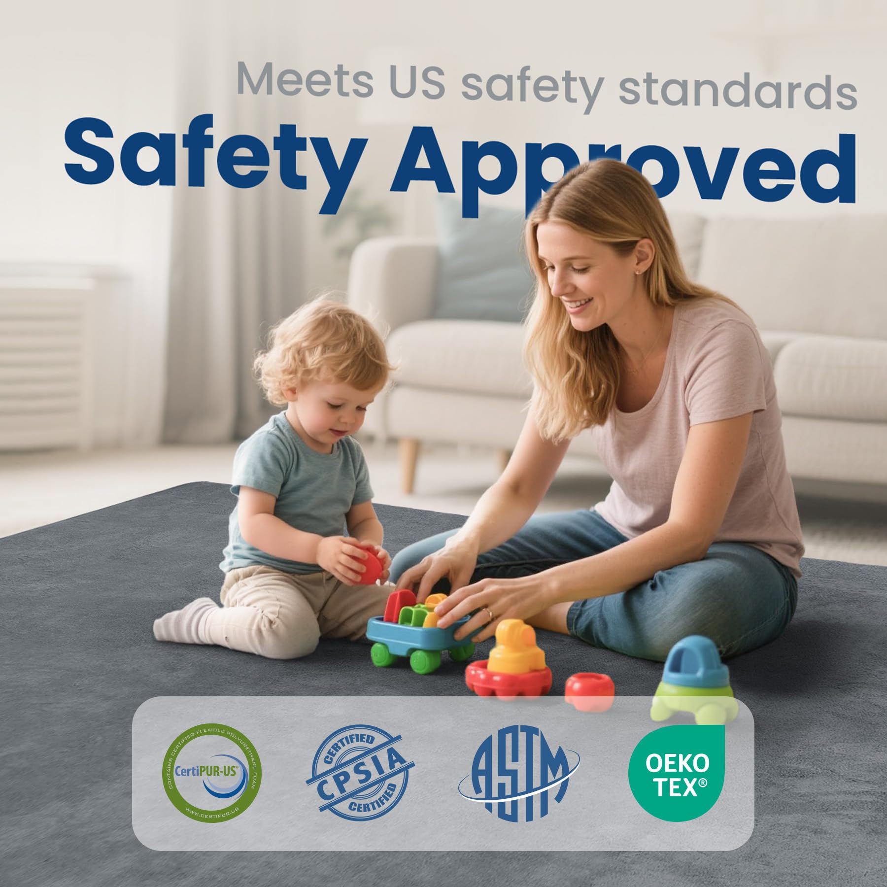 Certified Safe & Non-Toxic: Rigorously tested for safety, this nursery rug meets OEKO-TEX(on shell), ASTM, and CPSIA standards, ensuring a safe, chemical-free surface for your baby to crawl, play, and explore.
