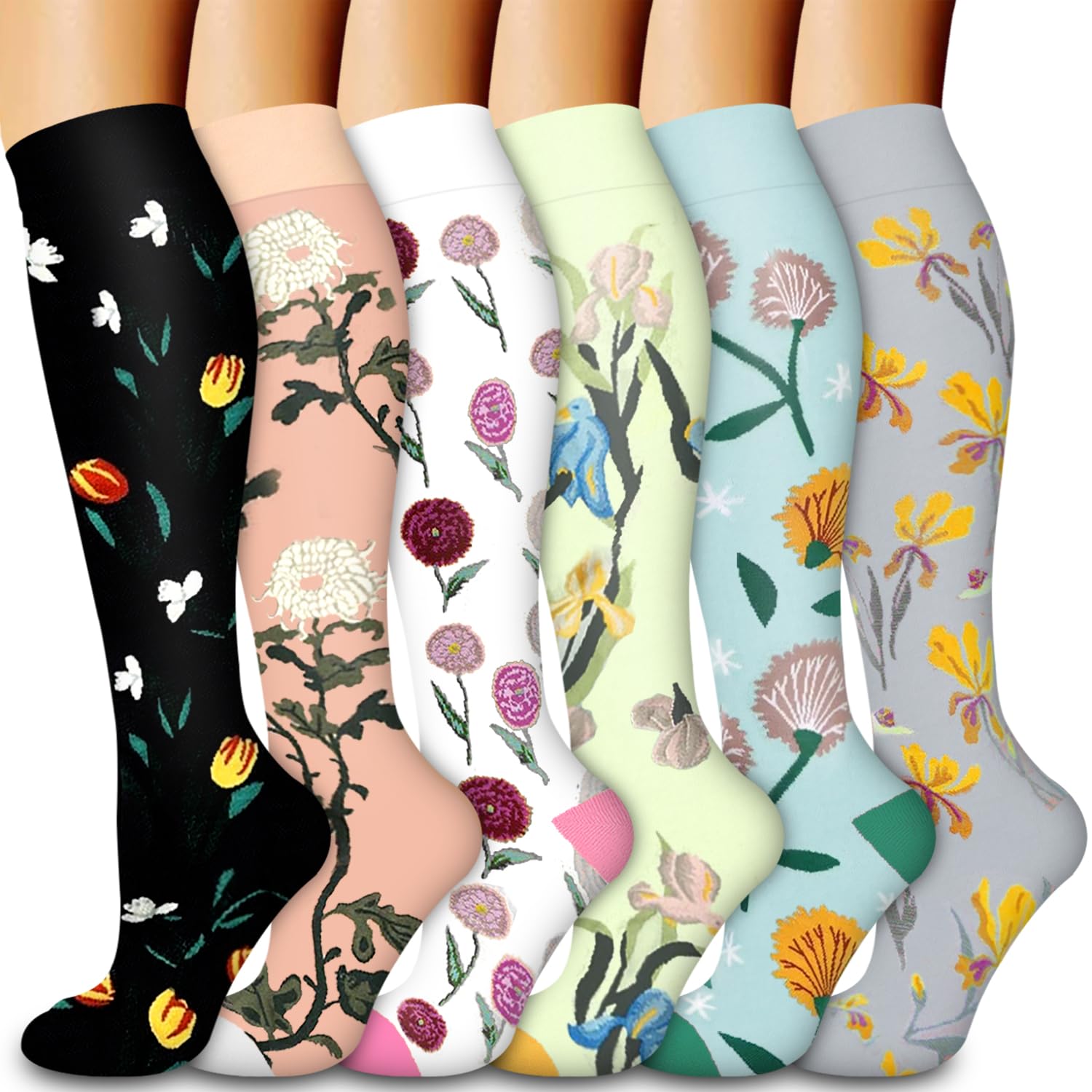 AMAZING EFFICACY-With a unique compression level that isn't too loose or too tight,it means you can wear our compression socks for women all day long comfortably.As they gently constrict the tissues and oxygenate the blood,they move waste fluids out,promoting ample circulation.Remove stress and stimulate every cell,reduce fatigue,soreness,cramping and prevent Varicose veins at the same time Ensure the healthy functioning of your circulatory system.Keep your legs feel fresher and more energized.