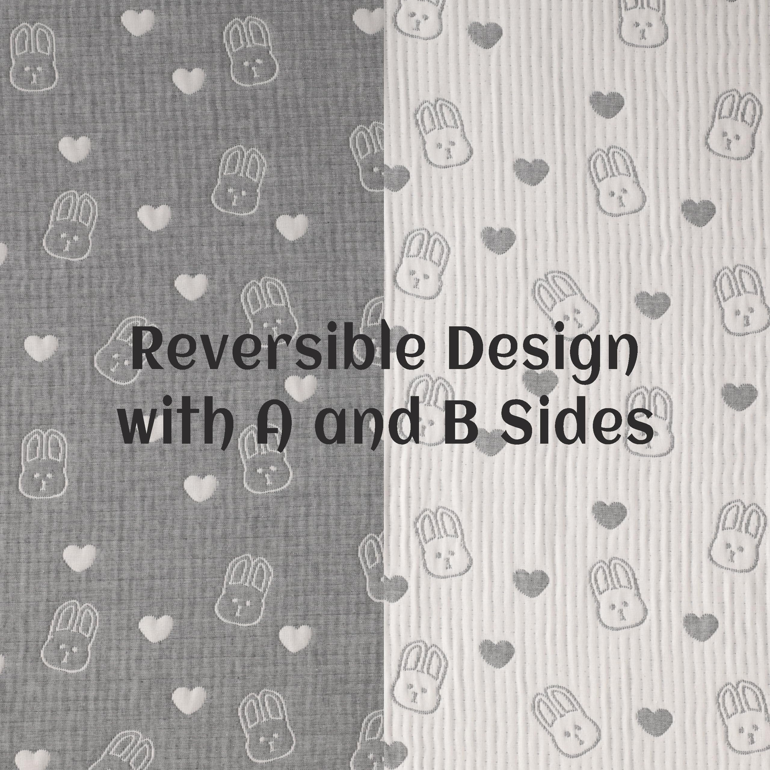 Classic reversible design: This blanket is designed reversibly which is very convenient and durable. The front is the dark grey background dotted with white rabblt patterns. The back is the white background dotted with dark grey rabblt patterns.