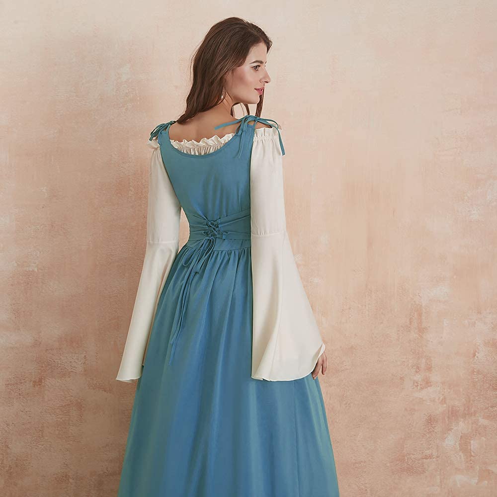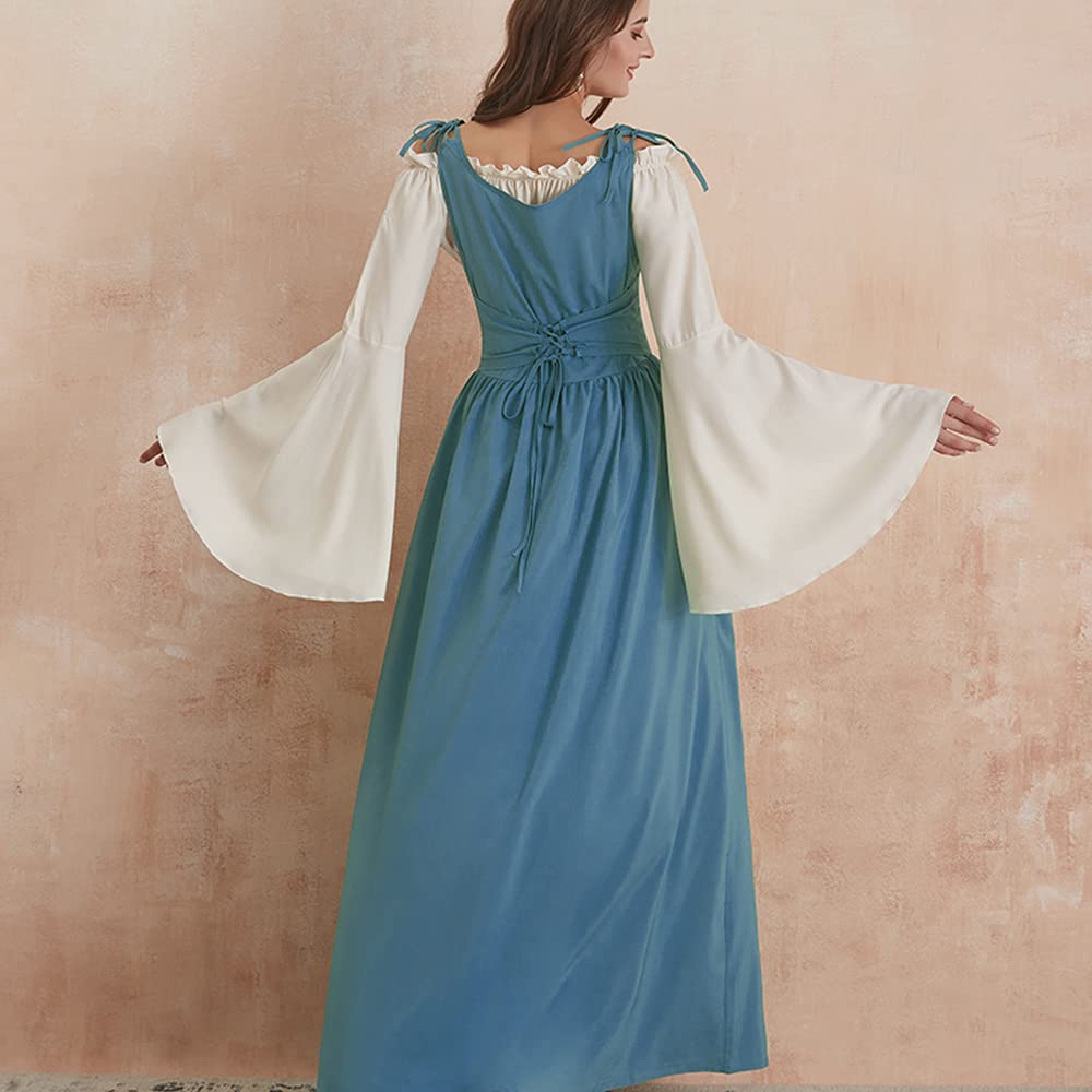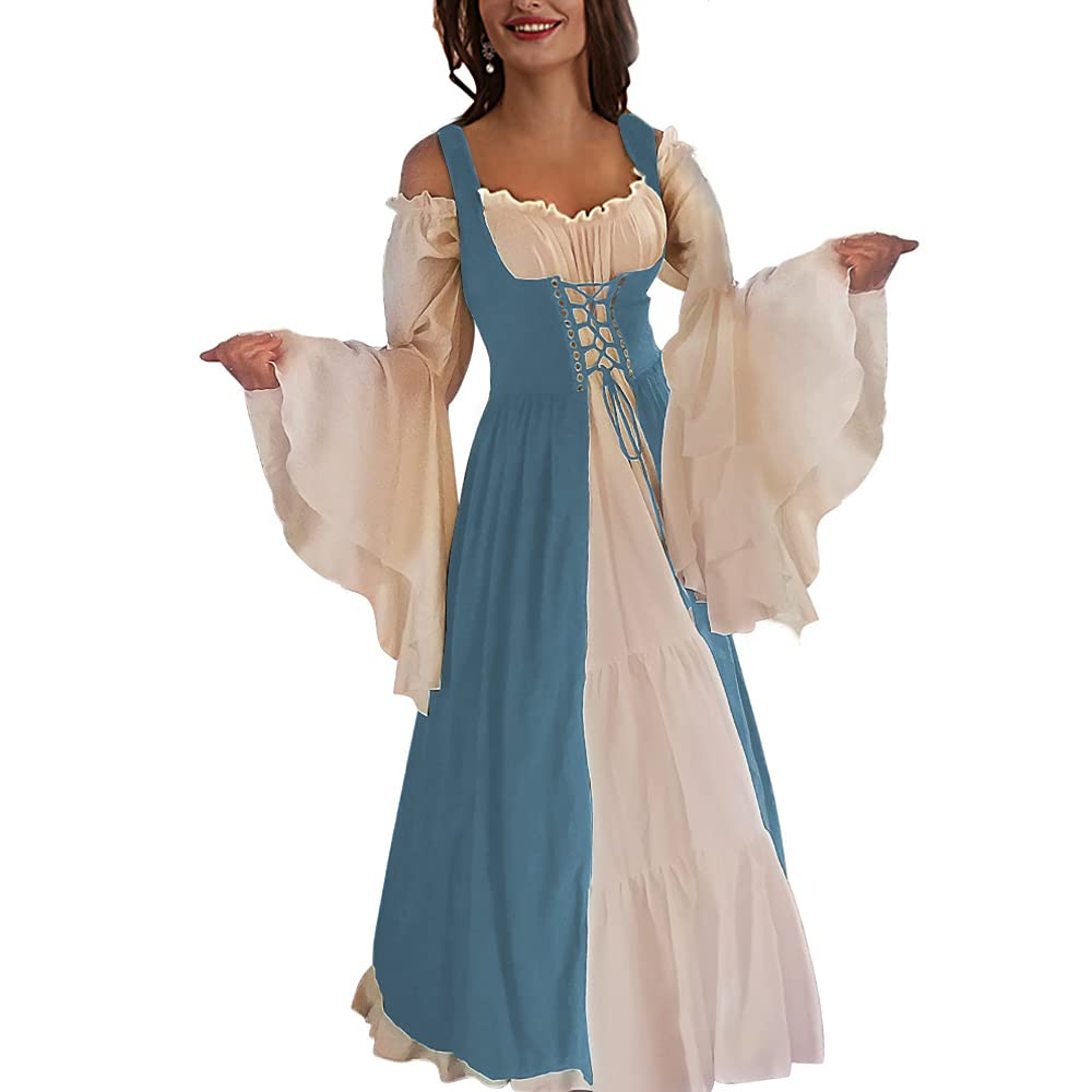 Style: Long Flare Sleeve, Floor Length, Off Shoulder, Elastic Waist, Comfortable, Medieval Long Dress for Women, Vintage Masquerade Party Dress