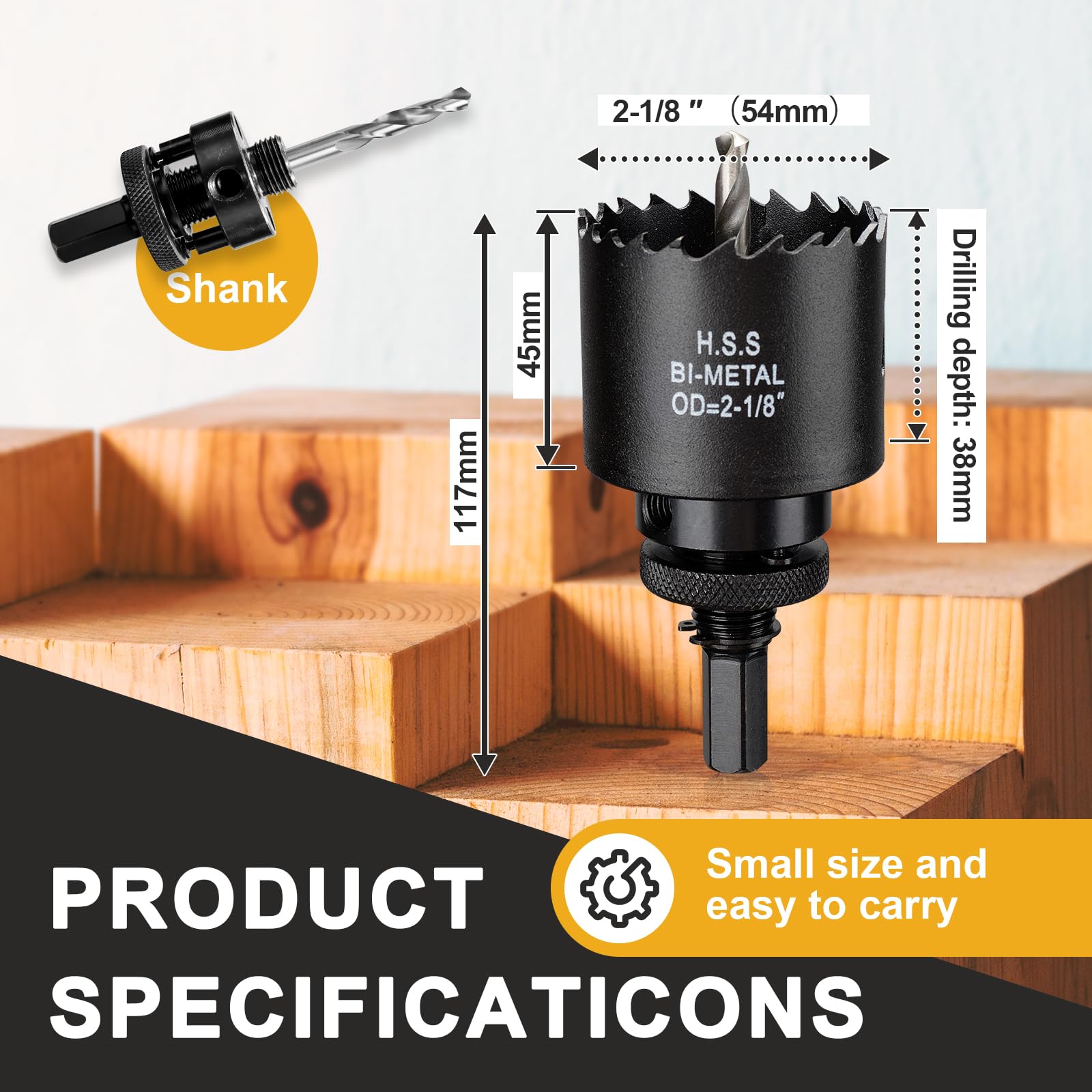 ITOOLFIRM HOLE SAWS for Wood, Metal, Ceiling, Drywall, Fiberglass, Acrylic, Sheet Iron and Steel Frame. Features: BI-Metal + High Speed Steel(HSS) Extremely fast sawing with minimal expenditure of force High concentric and side-stroke precision 7/16” Hex Shank Suitable for Cutting Household wood Plywood Galvanized pipe Fire hose Gypsum board PVC boards Holes in Ceiling for lights Holes for vent or fans Holes in table or wall for cable NOT Recommended for Cutting Masonry/Concrete/Cement Roof Stone Floor Marble/Granite Hardwood Compatible Devices Impact Driver Hand Drill Press Bench Drill Press Cordless Drill Precondition: drill chuck is required INSTRUCTIONS Pre-drill using light contact pressure. Continue drilling with minimal, even pressure. Avoid oscillating while drilling. Allow hole saw to “air” when using with wood and wood alternatives. The saw comes to a complete stop on your material before pulling it away. Miss Parts Problem: Each hole saw is coming with a drill bit and 7/16" hex shank, if you have revceived a product from our store without the parts, please return or replace your order. HAVE ANY PROBLEM, PLEASE CONTACT US FIRST, YOU’LL NEVER REGRET MAILLING US!!!