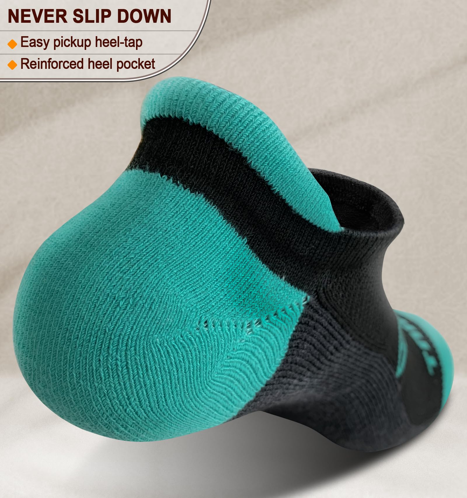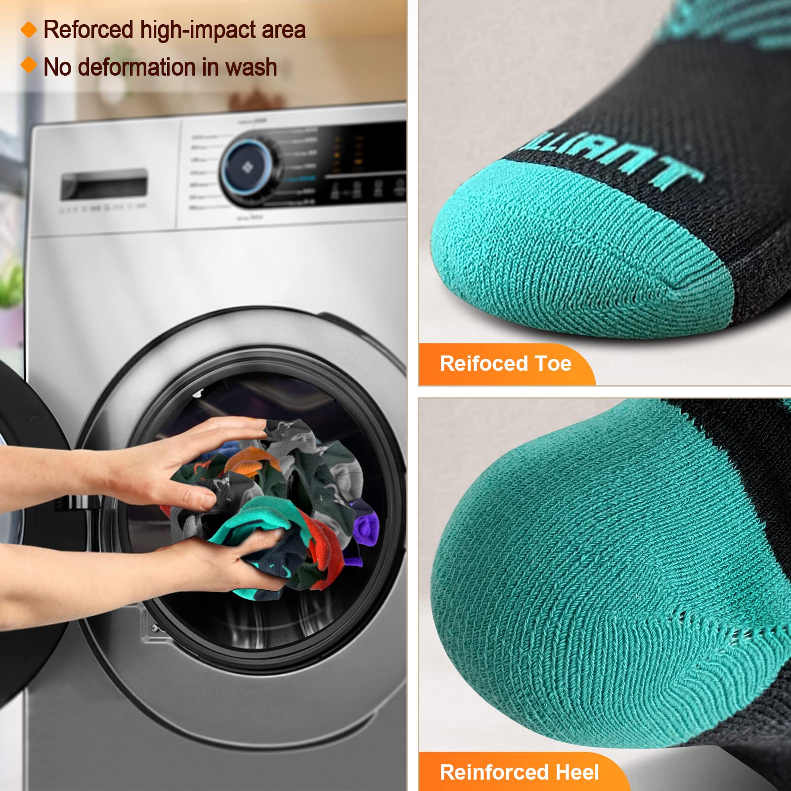 Durable--The 200 needle-count fabric knitting all around,high-density cushion in full sole and double knitting in all the joint positions,all these details proivdes a superior reliability and durability to this athletic socks to against any problem of tearing off or wearing out;