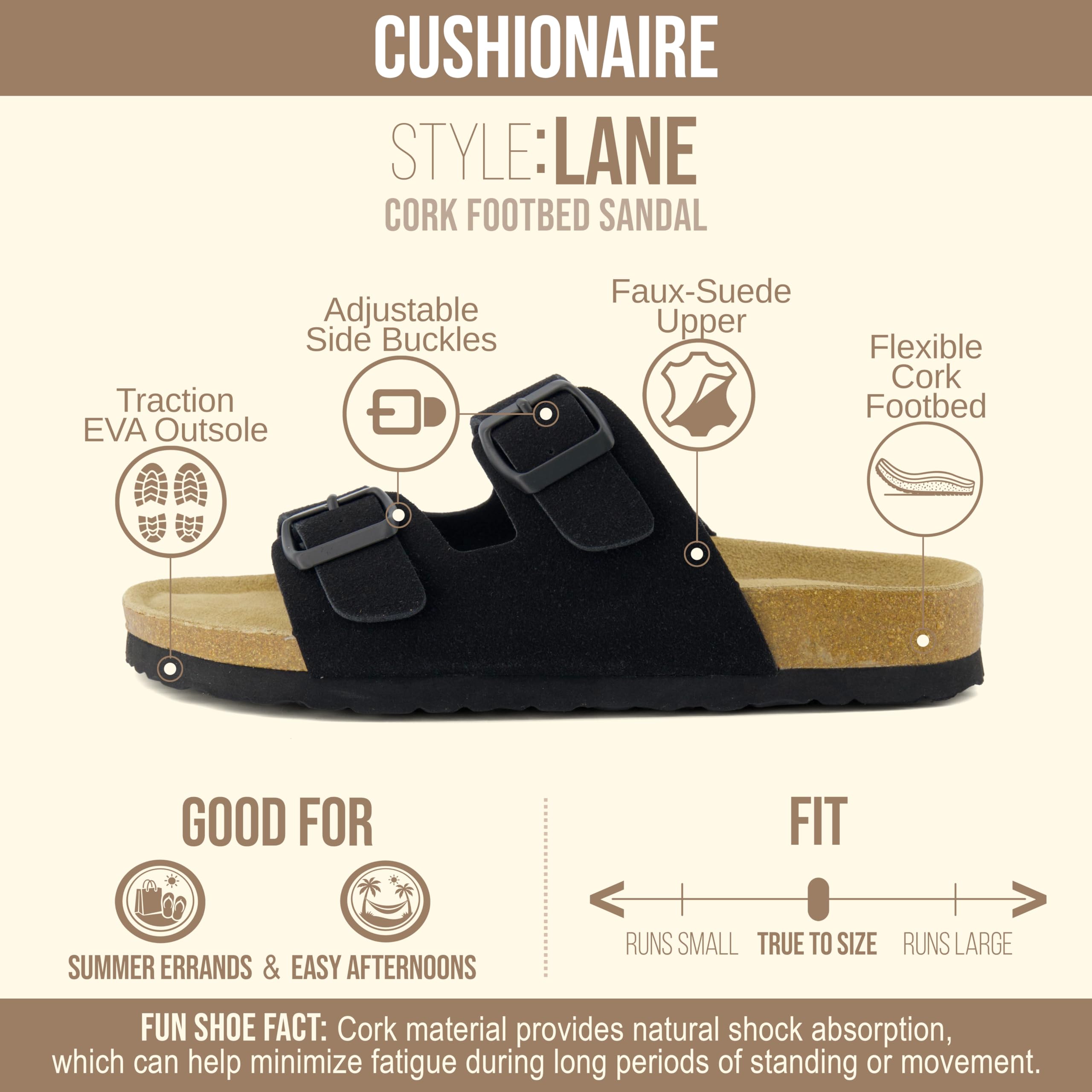 Description Women's Cushionaire comfort Cork footbed sandal. Stay cool with these high quality sandals that will give you comfort throughout your day.