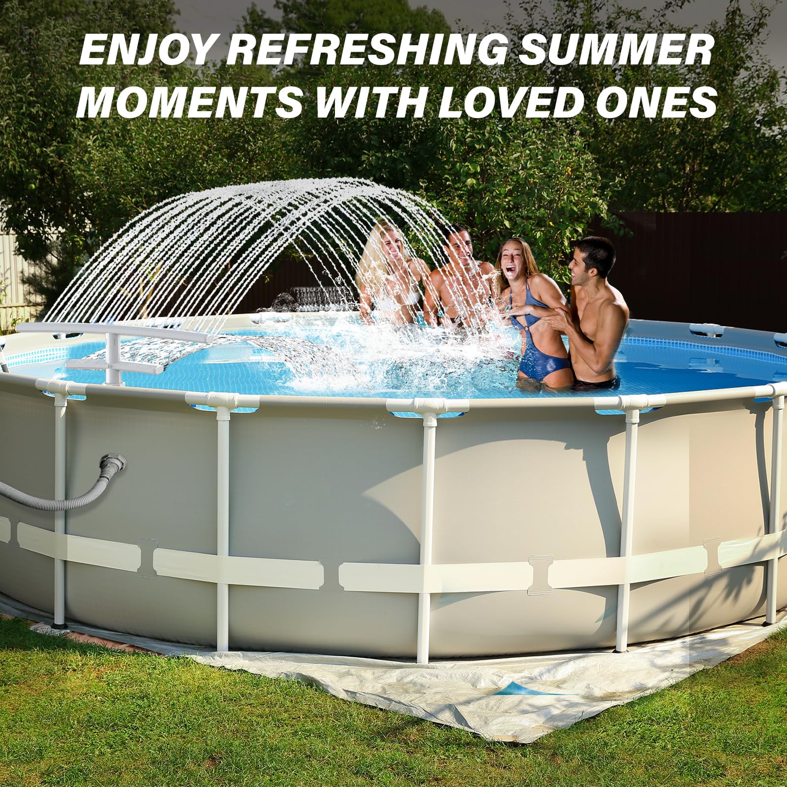 ✔[Easy Installation & Tool Free] Ready in 5 Minutes! Our pool sprinkler fountain is plug-and-play simple: Just turn off your pool pump, unscrew the standard return jet, and replace it with our above ground pool waterfall. Once connected, adjust the water flow to your liking! The included visual step-by-step guide makes setup a breeze. If you encounter any problems, POOLCOOLPRO team is here to help!