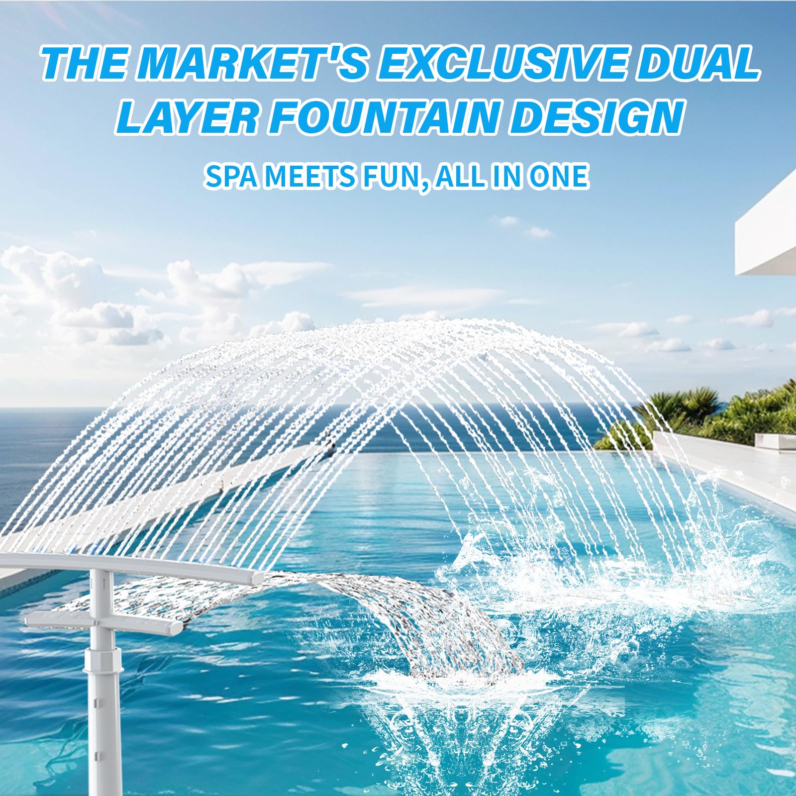 ✔[PoolCoolPro Exclusive Dual-Layer Fountain] Witness the elegance of hyperbolic water arcs! Unlike conventional single/dual spray systems, PoolCoolPro pool fountain delivers 3x greater water volume, 2x cooling coverage, and significantly enhanced cooling effects (36-42℉ lower than others). Enjoy next-level refreshment with family and friends during scorching summer days.