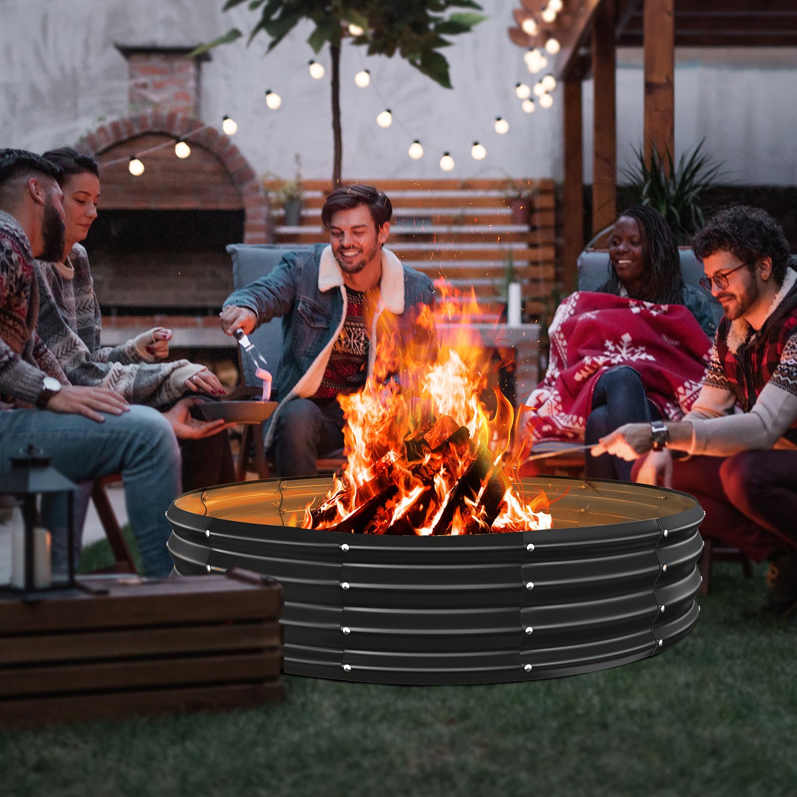 Durable Construction: The Black Round Galvanized Fire Pit Ring is made from 0.8MM thick high-quality galvanized steel and painted also,ensuring long-lasting durability and resistance to rust or corrosion
