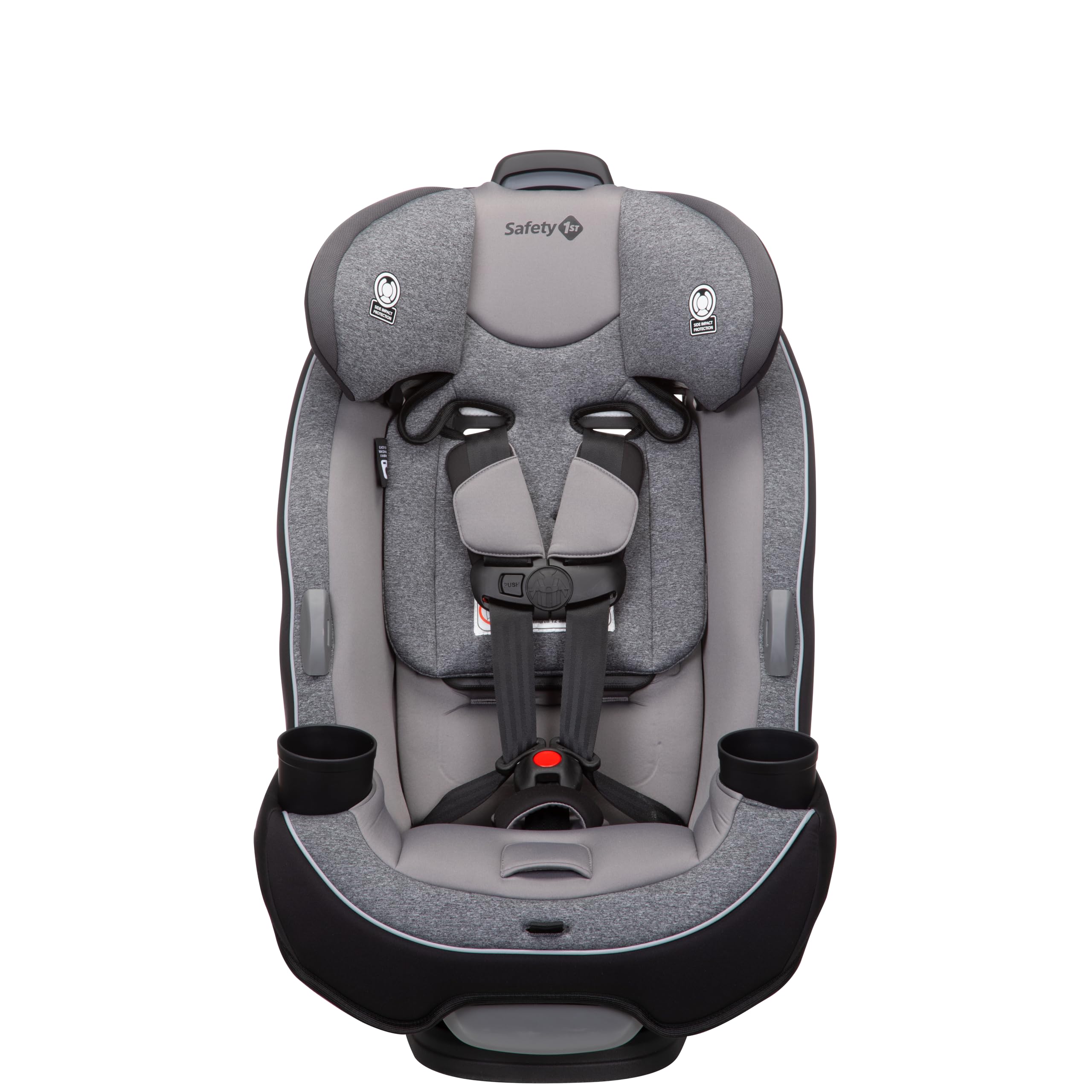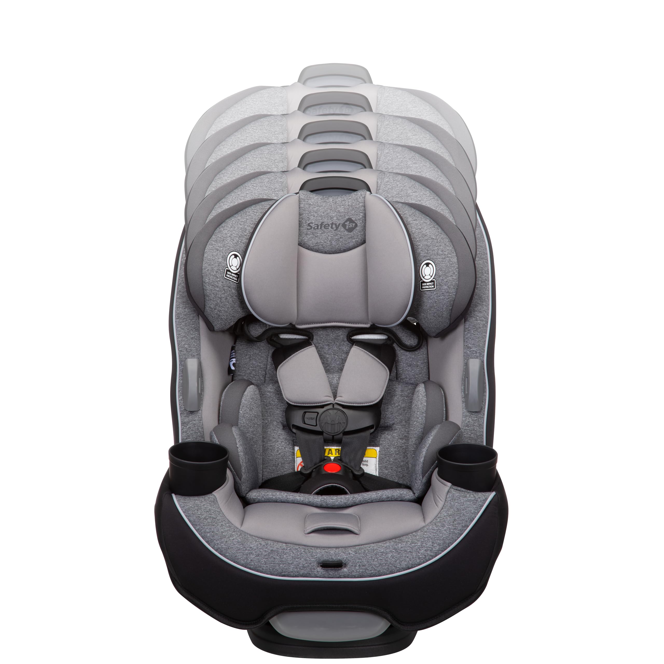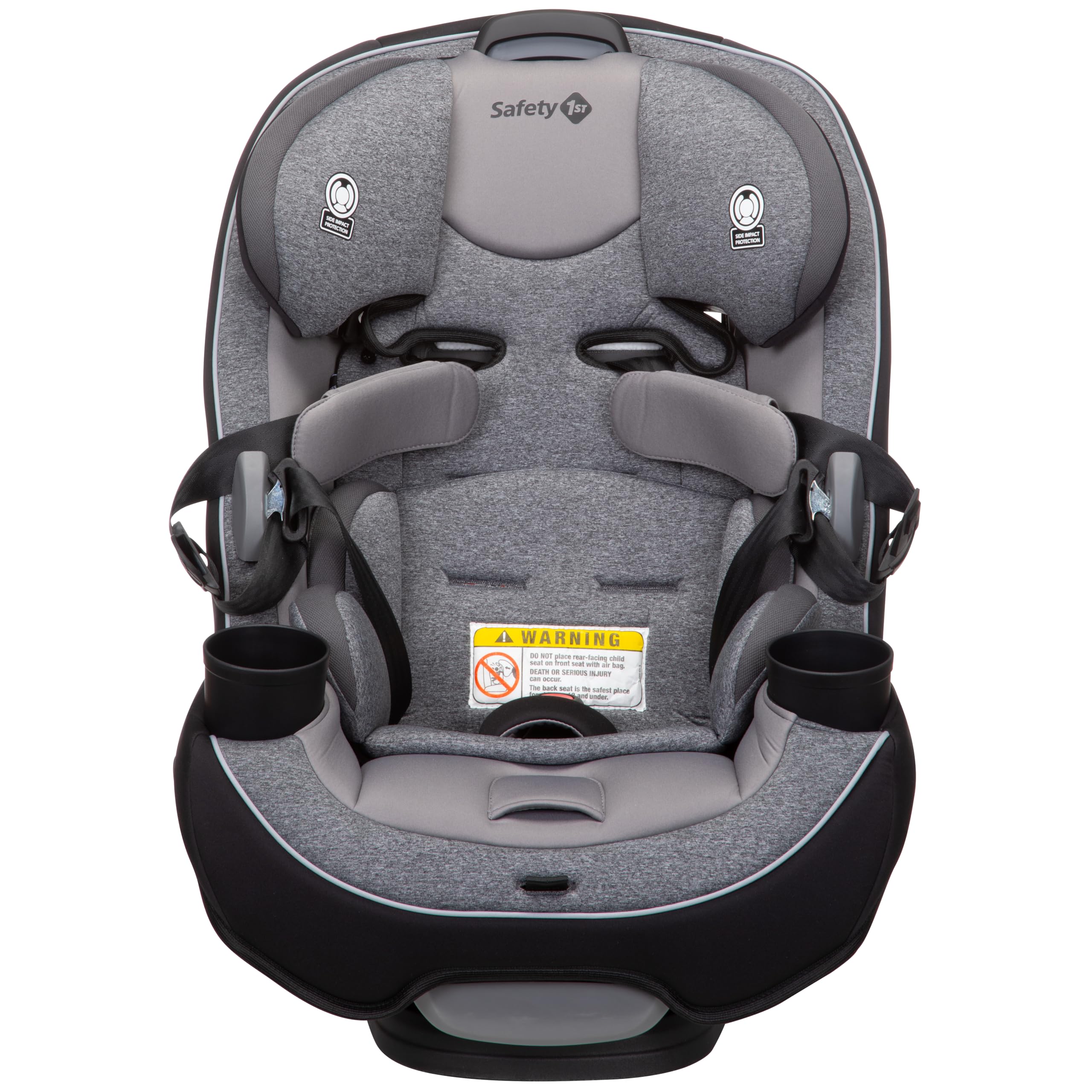 Get the car seat thats built to grow! From your first ride together coming home from the hospital to soccer day carpools, the Safety 1st Grow and Go All-in-One Convertible Car Seat will give your child a secure and comfortable ride. The Grow and Go All-in-One Convertible Car Seat is designed to last through all your firsts with your child, from 5 to 100 lbs. and can be used in rear-facing, forward-facing, and belt-positioning booster mode. Fits children through 3 stages: rear-facing (540 lbs., 19"40"), forward-facing (3065 lbs., 34.4"49"), and belt-positioning booster (40100 lbs., 43.4"52"). (Actual fit may vary. Not all children will comfortably fit in the seat for the full weight and height ranges listed.) As your little one grows, you can easily adjust the headrest and harness in 1 quick motion, without re-threading the harness or re-installing the car seat. The crotch strap and harness have multiple adjustment options to fit growing kids. When your child is ready to use the vehicle seat belts, buckling is made easy with the visible belt path guiding the way.You'll appreciate the parent-friendly design. As your tiny baby grows into a big kid, messes are bound to happen, but weve made cleaning easy. The seat pad snaps off easily without removing the harness and is machine-washable and dryer-safe. Dual cup holders transport favorite drinks and snacks, and are easily removable and dishwasher-safe. Getting kids in and out of the car is made easier with harness holders that keep harness straps out of the way. Built for child comfort, the Grow and Go Convertible Car Seat includes 2 removable grow-with-baby pillows to give your new travel companion a snug fit. 3-position recline makes it easy to get a good fit in your car.