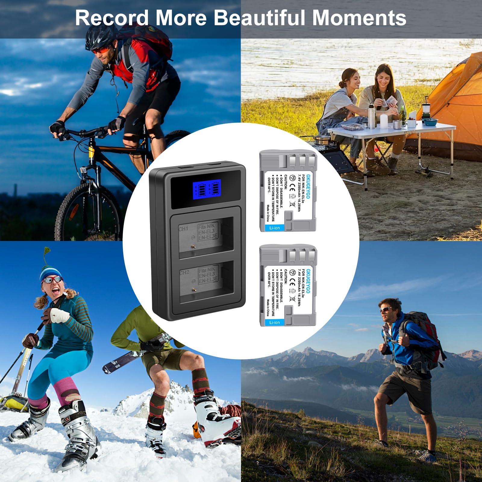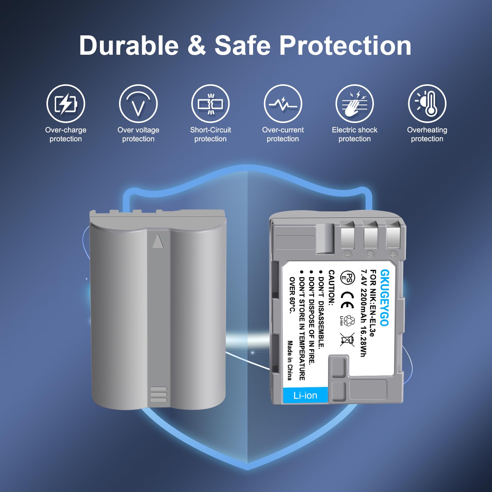 🔋Battery Feature: Premium Lithium-ion no memory effects. Via CE, FCC, PSE, ROHS Safety certified. Higher capacity recording more wonderful moments, is a professional replacement for EN-EL3E Battery.